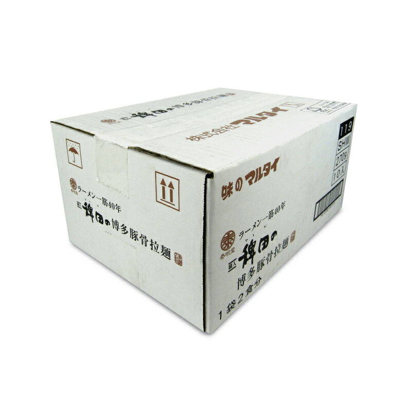 泰明堂 職人稗田(ひえだ)の博多豚骨拉麺 マルタイの味と品質を守り続け、ラーメン一筋40年 昭和三十四年発売以来四十余年にわたって愛されてきた棒拉麺 麺とスープにこだわりその美味しさを追求した渾身の逸品です。 ・麺:ストレート細麺 ・スープ:豚骨の炊き出し感が存分に味わえるこだわりスープ ・かやく:ごま・ねぎ(フリーズドライ製法) ・1袋2食分 マルタイの味と品質を守り続けて40年。職人『稗田』の棒拉麺! 『味のマルタイ』渾身の逸品。コシのある硬めの細麺と、濃厚でコクの深い本格的なスープが絶妙な味を引き出します。『稗田』は商品開発一筋40余年のマルタイ研究員の名前です。 召し上がり方(1人前調理法) 1.鍋に500mlの水を沸騰させ、めん1束を入れ、90秒ゆでます。(お好みに合わせて、ゆで時間を加減してください) 2.めんがゆであがったら火を止め、かやく、粉末スープ、液体スープ各1袋を加えて、よくかき混ぜてください。 ※液体スープが固まっている場合は、ぬるま湯で温めてください。 3.丼に盛り、熱いうちにお召し上がりください。 ※お好みにより、焼豚、のり、紅生姜等を添えますと一層おいしく召し上がれます。 ※1度に2人前の調理をされる場合は、水量を2倍にしてください。 名称 即席中華めん 原材料名 めん〔小麦粉(国内製造)、食塩、植物性たん白〕、スープ〔ポークエキス、ポークオイル、ガラスープ、デキストリン、香味油、ゼラチン、糖類(砂糖、ぶどう糖、麦芽糖)、野菜粉末、食塩、粉末油脂、たん白加水分解物、酵母エキス、でん粉、クリーミングパウダー、香辛料、粉末しょうゆ、ホタテエキス、チキンエキス、植物油脂〕、かやく(煎りごま、ねぎ)/調味料(アミノ酸等)、酒精、かんすい、pH調整剤、カラメル色素、クチナシ色素、酸化防止剤(ビタミンE)、香料、ビタミンB1、酸味料、(一部に小麦・乳成分・えび・ごま・大豆・鶏肉・豚肉・ゼラチンを含む) 内容量 270g(めん150g)× 10袋入 賞味期限 製造日より8ヶ月 ※実際にお届けする商品の賞味期間は在庫状況により短くなりますので何卒ご了承ください。 保存方法 直射日光及び湿気、香りの強い場所を避け、常温で保存してください。 栄養成分表示1食(135g)当たり エネルギー:503kcal、たんぱく質:22.6g、脂質:17.2g、炭水化物:64.5g、食塩相当量:6.8g(めん・かやく:1.8g、スープ:5.0g) 【参考値:調理後に分別して分析(エネルギー)】 めん・かやく:330kcal、スープ:173kcal 合計:503kcal アレルギー物質 小麦・乳成分・えび・ごま・大豆・鶏肉・豚肉・ゼラチン 製造者 株式会社マルタイ 製造所 製造所固有記号 K:北波多工場 I:佐賀工場 この商品のお買い得なセットはこちらから マルタイのその他の商品はこちらから 再入荷しました2025/11/29はとや製菓 ソフトりんご 8個箱 × 2箱5,641円2025/11/29ユウキ食品 MC マコーミック シェイクポテト3,061円2025/11/29エスビー食品 S&B 花椒100g × 4袋 4,200円