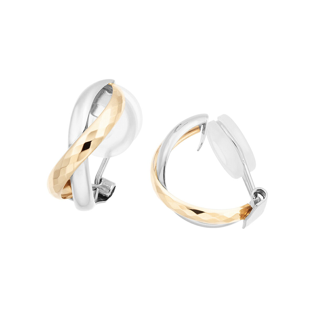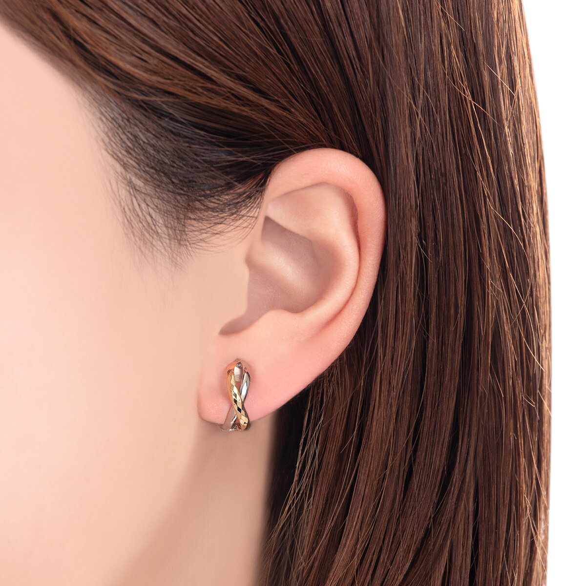 イエローゴールドとホワイトゴールドのコンビネーションがエレガントなイヤリング。イエローゴールドのラインに施されたカットが、光を受けてキラキラと輝き、お顔周りを華やかに魅せてくれます。使いやすいサイズ感なので、シーンやファッションを選ばずお使いいただけるアイテムです。地金素材:K10YG/K10WG大きさ(縦×横):約13.5×5mm※サイズガイドはこちら※有料ケースはこちら