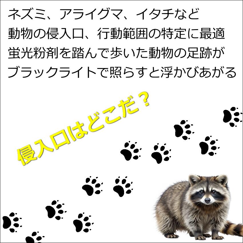 蛍光粉剤1kg ねずみ 害獣 調査 侵入口 穴 行動範囲 特定 対策 足跡 追跡