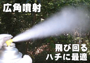 ▼ 製品特徴 特大サイズ730mlサイズで余裕の噴射力を持つハチダウン。 強力な広角霧状噴射で飛び回るスズメバチやアシナガバチを撃退します。 ハチダウンにはピレスロイド系の殺虫剤でノックダウン効果作用のある成分と致死作用のある成分の二種類を配合してあります。 大容量なので安心して駆除作業ができます。噴霧角度が広角なので飛んでいるスズメバチなどを駆除するのに適します。 実際に使ってみました! 飛び回るハチの駆除やアシナガバチの巣駆除にはハチノックよりも使いやすいと感じます。薬剤の到達距離はおおよそ2m前後ですが噴射量、噴射速度などが駆除に最適で業務用ならではだと感じます。大容量タイプなので連続噴射していても安心して作業が出来ます。2,600mm伸びる軽量竿ハチローFHに接続する事で安全かつ確実に蜂や蜂の巣駆除が可能です。 ハチダウンにエアゾール用延長ノズルのハチローFHを取り付ける事で 安全確実にスズメバチの巣を駆除出来ます。 ハチローFHは最大で2600mmまで伸びる延長ノズルです。 ▼ 使用方法 巣を安全に処理する為には風上から大量にハチダウンを噴射して下さい。 巣の出入り口からも大量に薬剤を注入して下さい。飛び回るハチには直接噴霧して下さい。 ハチがノックダウンし、巣から落下するのを確認してから巣の基元を残すことなく巣全体を取り除いて下さい。 本剤の缶の総重量(キャップ込み)が300g以下になった時は駆除中に薬剤が無くなる場合がありますので予備を1缶用意して下さい。安心の大容量エアゾールのハチダウンです。 ハチローFHで簡単ハチの巣退治! ハチダウンをハチローFHに接続する事でハチの巣に近づかず処理出来ます。 ハチローFHの先端はフレキシブルヘッドで手元操作で噴射角度が自由自在に調整可能です。 ハチローFHのご購入はコチラから ハチローFHのご購入はコチラから ▼ 商品内容 製品名:ハチダウン 内容量:730ml 噴霧角度:広角(霧状噴霧) 成分:d−T80フタルスリン、d−T80レスメトリン 対象害虫:スズメバチ、アシナガバチなど 使用方法:対象害虫に向かって直接噴霧して下さい。 販売元:株式会社エムシー緑化