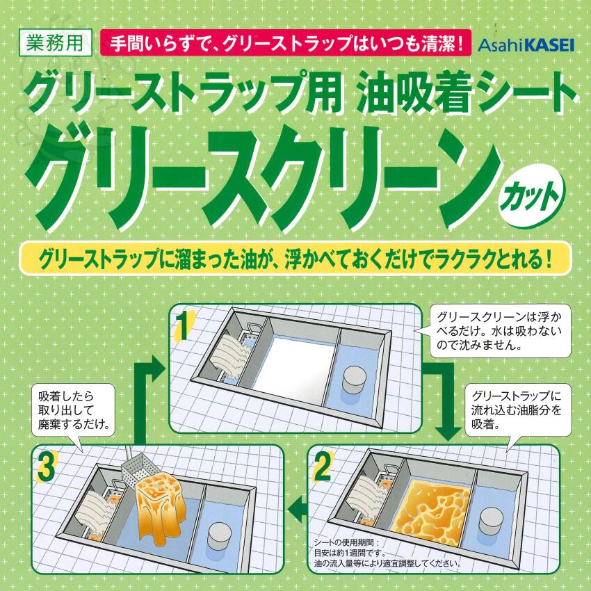 グリーストラップ用油吸着シート グリースクリーンカット1袋(5枚入り) サイズ50cm×50cm 清掃 洗浄 残渣 スカム 油汚れ 臭い 油脂 分離槽 残留 ヘドロ 廃棄 旭化成ホームプロダクツ グリストラップ 構造 フタ 洗剤 サイズ 業務用