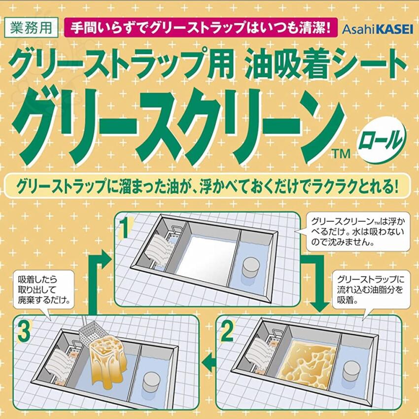 グリースクリーン ロール1本(50cm×10m) グリーストラップ用油吸着シート 清掃掃除 油汚れ吸着シート