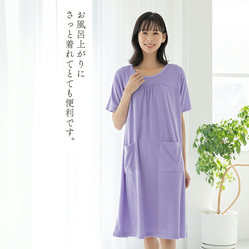 M〜L L〜LL ライラック ボーダー おしゃれ ゆったり らくらく ポケット付き 半袖 ワンピース タオル地 | ソフィアヴァレンチノパイル地ドレス