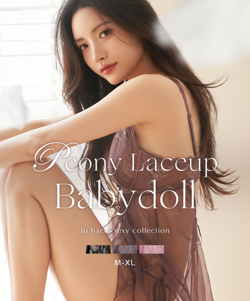 【最大25%OFFクーポン】新色登場!ピオニーレースアップベビードール ブラック アッシュブラウン ローズピンク セクシー ランジェリー レディース 【ベビードール単品】【tu-hacci】