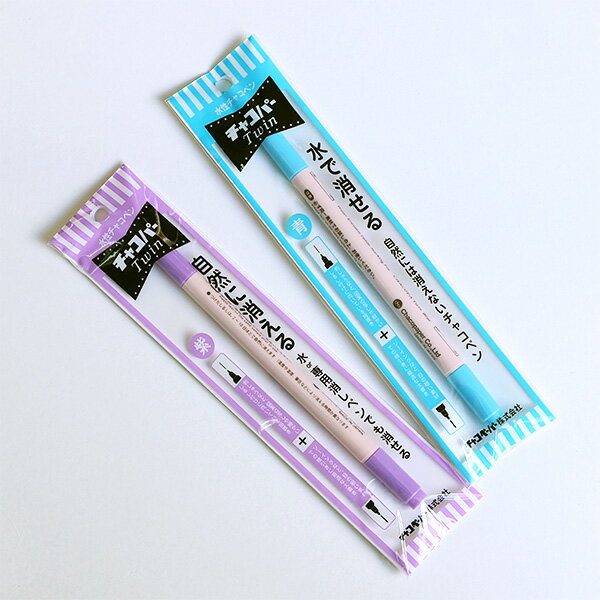 ツインタイプのチャコペンです。刺しゅうなどの図案転写に便利な細書きと目の粗い素材や線引きに適した太書きのツインタイプ。◎ペン色によって消し方が異なります■水で消えるタイプ→青■自然に消えるタイプ→紫(約2〜10日ほどで消えます。水もしくは専用消しペンでも消すことができます。)■材質:水性インキ、ポリプロピレン