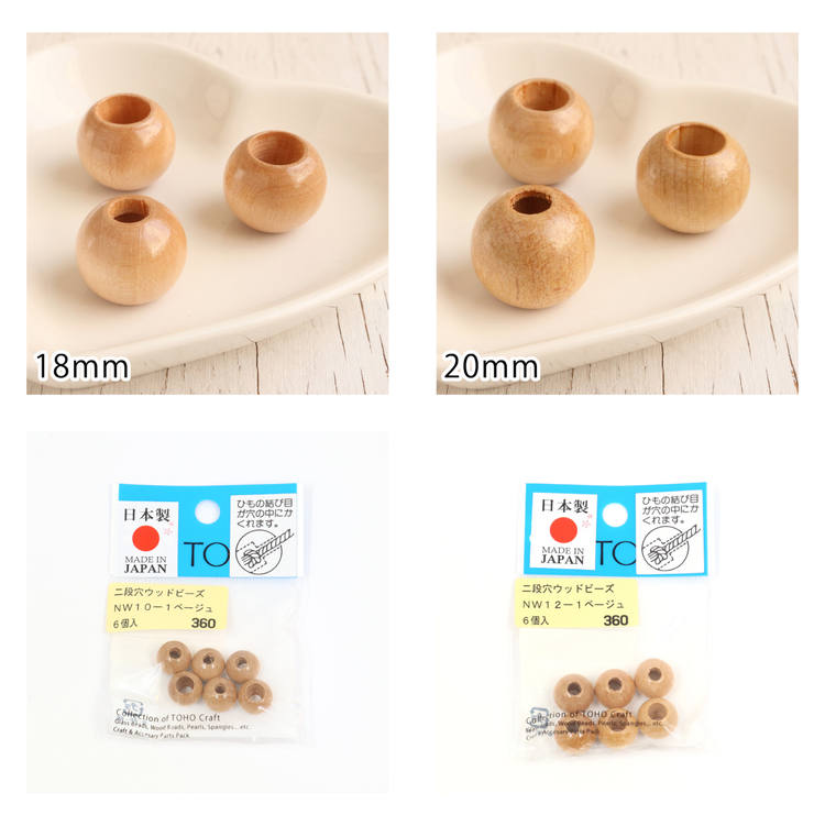 ■材質:木製 ■カラー:ベージュ ■サイズ:NW10-1 10mm(穴径約4mm/6mm)/6個入 NW12-1 12mm(穴径約3mm/6mm)/6個入 NW14-1 16mm(穴径約3mm/6mm)/6個入 NW16-1 20mm(穴径約5mm/9mm)/3個入 NW18-1 20mm(穴径約6mm/9mm)/3個入 NW20-1 20mm(穴径約7mm/10mm)/3個入