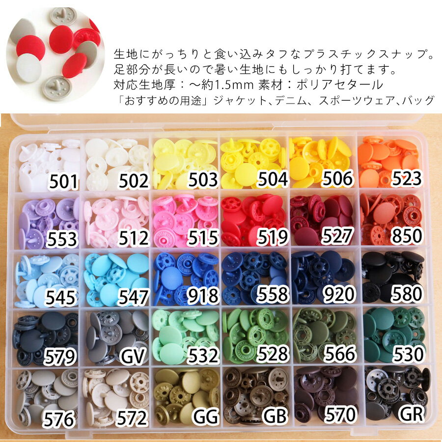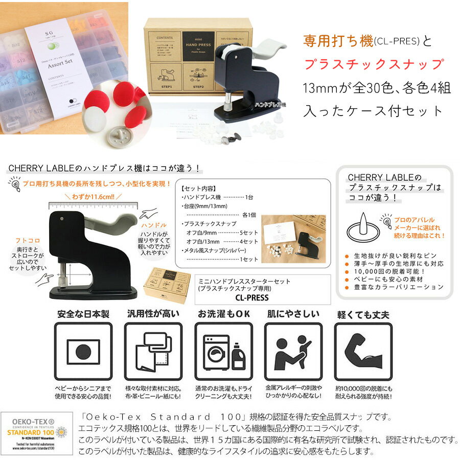 プラスチックスナップ ボタン 13mm 30色 ケース付 と 打ち機セット CHERRY LABEL チェリーレーベル サングリップ SG
