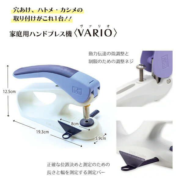 ハンドプレス機 家庭用+カシメ用&ハトメ用取付コマ各1個 が入った お得セット 3点セット Prym プリム VARIO Creative Tool ボタン ぼたん スナップ ハンドプレス