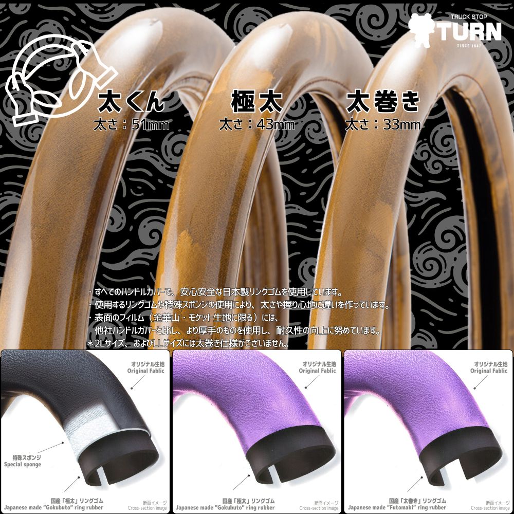 太さ 約43mm(トラック業界で一般的な太さ) 純正に近い雰囲気の生地 握り心地・グリップ向上 快適性アップ・疲労軽減 国内自社工場生産 丈夫・高い耐久力 受注製作 プレゼントに最適 〈ターン製ハンドルカバーの特徴〉 他社にはない太さをラインナップし、様々な価値観で商品を選択することができます。 安心安全を考え、軽自動車からトラックまで業界最多の7〜9サイズを用意しています。 握り心地やグリップ力の向上から運転の疲労を軽減、快適で安全なドライブを提案します。 耐久力が高いので長期的なコストパフォーマンスは抜群、愛着をもって長く使えます。 トラックパーツ業界で培われた長年の信頼と実績に裏打ちされた品質を誇ります。 ご注文を頂いてから国内自社工場にて1本1本縫製させて頂きます。 〈サイズや太さについて〉 太さ:およそ43mm(トラック業界で一般的な太さ) 適合:軽自動車~トラックまで サイズの確認はこちらから 〈ご注意事項〉 こちらの商品は受注製作になります。(ご注文確定後、1本1本縫製させて頂きます) お届けの目安:ご注文確定後、およそ9〜12日です。(メールにてご案内いたします) お届け方法:宅配便(佐川急便または日本郵便) 原則、ご注文後のキャンセルや注文内容の変更は受け付けておりません。 原則、返品や交換についても受け付けておりません。 最新の商品状況を表示するよう心がけてますが、欠品・廃番の場合もございます。 こちらの商品は下記項目で検索されています金華山 デコトラ トラック おしゃれ 飾り 派手 王朝 黒 白 金 灰色 ブラック ホワイトブラック ゴールド グレー フソー FUSO 三菱 日野 HINO いすず いすゞ ISUZU イスズ UD 日産 軽四 軽自動車 軽トラ トヨタ マツダ 17スーパーグレート 07スーパーグレート 2000 ベストワンファイター ニューファイター NEW フルコンファイター 20キャンター ブルーテックキャンター Bキャンター ジェネレーションキャンター ニューキャンター Gキャンター 17プロフィア エアループプロフィア グランドプロフィア Gプロフィア プロフィアテラヴィ 17レンジャー レンジャープロ デュトロ エアループデュトロ ファイブスターギガ Fギガ GIGA 07ギガ ギガ 23フォワード 07フォワード フォワード 320 23エルフ 07エルフ PMエルフ NEWエルフ エルフ 17クオン パーフェクトクオン クオン ビッグサム フレンズコンドル ファインコンドル ダンプ S SW サイズ 日本製 国産 長持ち 疲れにくい 握りやすい 太い 細い かっこいい かわいい