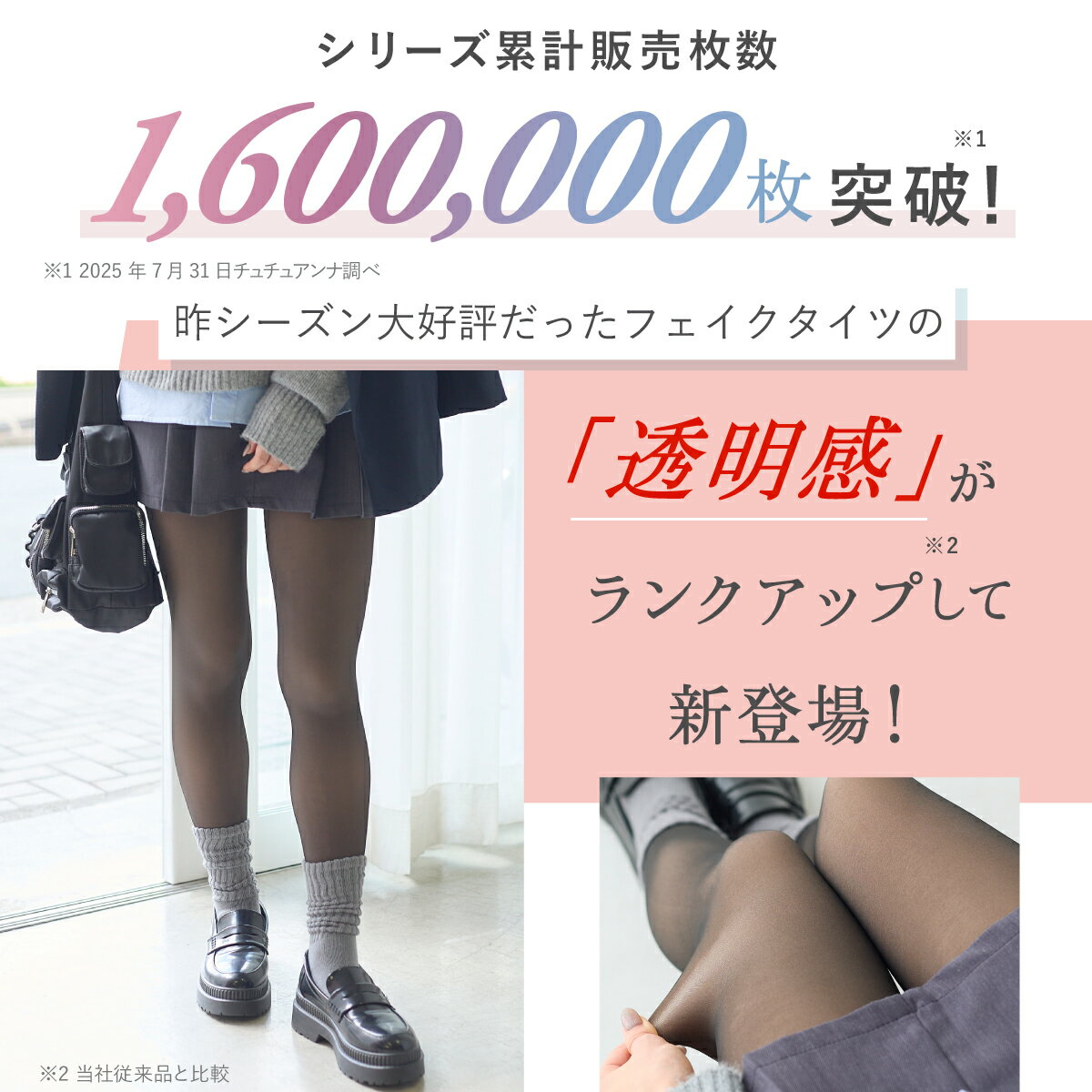 まるで素肌のようなフェイクタイツ(無地) 80デニール 110デニール 200デニール まるで素肌のようなフェイクタイツ(柄あり) ラッセルレース ドット柄 ドット×リボン柄 ストッキング風!まるで素肌のような80デニールフェイクタイツ。 去年大人気だったフェイクタイツが、パワーアップして今年も登場♡ 【リニューアルポイント】 ・去年よりも透明感アップで美脚見え ・糸を改良し、毛玉ができにくく快適な履き心地に ・保温性もキープしてくれるので冷え対策にも◎ 【今年の注目ラインナップ】 人気の「黒×ベージュ」に加えて、トレンド感のあるドット柄、上品なラッセル柄も新登場! コーデや気分に合わせて選べる多彩なバリエーションをご用意しました。 美脚もあたたかさも、おしゃれも。ぜんぶ叶えてくれる1足です♡ ■サイズ サイズガイドはこちら ■素材 ナイロン・ポリウレタン ■原産国 中国 ■仕様 ヒップ部分マチ付き ■モデル 167cm(着用サイズM-L) ■ご注意 ※繊細な編み方をしている商品の為、着用の際は爪などで引っ掛けないようにご注意ください。 ※汗や水で湿った状態で強い摩擦を受けると移染する恐れがあります。 ※伸縮性とフィット性に優れた糸を使用している為、見かけ上左右の長さが異なる場合がありますが着用上は問題ありません。 ※素材の特性上、着用中の摩擦や洗濯により毛玉が発生することがございます。 【洗濯方法】 ・優しく押し洗いしてください。 ・つけ置きや洗剤により色落ちすることがあります。色の異なるものと一緒に洗ったり、脱水後の重ね置きは避けてください。 ■レビューについて 当ページに掲載されているレビューには、リニューアル前の商品にいただいた内容も含まれております。 2025年9月以降は素材を変更し、より快適な仕様に改善しておりますので、あらかじめご了承ください。 ●検索関連ワード(本商品の説明ではありません) レディース 婦人 女子 レッグウェア タイツ カラータイツ 裏起毛タイツ 柄タイツ 網タイツ 着圧タイツ セット まとめ買い コスパ お得 オトク 20デニール 30デニール 40デニール 60デニール 80デニール 110デニール 160デニール 防寒 あたたかい 冷え防止 冷え対策 可愛い かわいい おしゃれ ベーシック シンプル tutuanna チュチュアンナ ちゅちゅあんな 去年大人気だった、まるで素肌のようなフェイクタイツの110デニールが今年も登場!肌側はふんわりとした微起毛で、履いた瞬間からあたたかさを実感。裏地がベージュカラーの二重構造になっていて、まるでストッキングを履いてるような自然な透け感を叶えます。しかも今年は透明感がさらにアップして、美脚見えもばっちり♡寒さを気にせずおしゃれを楽しみたい!そんな願いを叶えてくれる優秀アイテムです♡【今年の注目ラインナップ】人気の「黒×ベージュ」に加えて、 トレンド感のあるドット柄、上品なラッセル柄も新登場!(80デニール)コーデや気分に合わせて選べる多彩なバリエーションをご用意しました。美脚もあたたかさも、おしゃれも。ぜんぶ叶えてくれる1足です♡ ■サイズサイズガイドはこちら■素材ナイロン・ポリエステル・ポリウレタン■原産国中国■仕様ヒップ部分マチ付き■ご注意【取り扱いのご注意】※繊細な編み方をしている商品の為、着用の際は爪などで引っ掛けないようにご注意ください。※汗や水で湿った状態で強い摩擦を受けると移染する恐れがあります。※伸縮性とフィット性に優れた糸を使用している為、見かけ上左右の長さが異なる場合がありますが着用上は問題ありません。※素材の特性上、着用中の摩擦や洗濯により毛玉が発生することがございます。【洗濯方法】・優しく押し洗いしてください。・つけ置きや洗剤により色落ちすることがあります。色の異なるものと一緒に洗ったり、脱水後の重ね置きは避けてください。