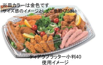 オードブル皿/オードブル 容器/ オードブルセット 【ティアラプラッター小判40金】透明蓋付きセット 10枚入り使い捨て大皿のオードブル容器で惣菜や食材が引き立ちます。用途(プレート/取り皿/オーバル皿/エコ皿/オードブル皿使い切り/小判型の容器