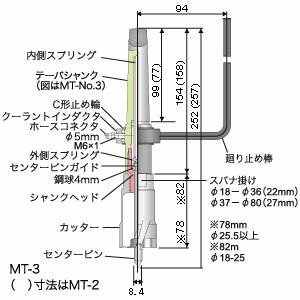 特徴 ●独自の3分割刃先形状で、作業性、耐久性に優れています。 ●1枚のチップで切粉を3分割するため、従来のメタルボーラーに比べ、耐久性が向上。 ●独自の刃先設計により、穿孔中のスタック、穿孔後の切削片の詰まりを激減させました。 ●1枚のチップで切粉を3分割に出来るので、切粉の排出がスムーズ。 ●チップの種類は1種類なので、再研磨が簡単に行えます。 ●板厚5mm以下の鋼板、形鋼、ステンレス板、鋳鉄などへの穴あけに。 ●ネジタイプ カッタ、切断機 仕様 サイズ 59mm DLMB5059