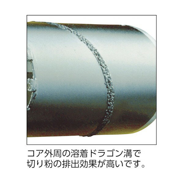 特徴 ■特徴 お手持ちの回転ドリルで鉄筋コンクリートなどの軟削材への穴あけが水を使わず容易にできます。 コア外周の溶射ドラゴン溝で切り粉の排出効果が高く、スピーディーな穴あけ作業が可能です。 新開発ラジワンシャンクシステムにより、他サイズコアボディーへの交換が簡単です。 溶射ドラゴン溝は加工孔と同径なので、粉塵を孔内に残さず排出できます。 ストレートタイプ・SDSタイプ電動ドリルに対応しています。 ■用途 被削材:鉄筋コンクリート、重量ブロック、硬質タイル、硬質窯業系サイディングなど。 ■材質 刃部:工業用ダイヤモンド センターピン:高速度鋼 ■注意点 ボディ単体だけでは使用できません。 仕様 サイズ 65mm 入数 1点 RDG65B