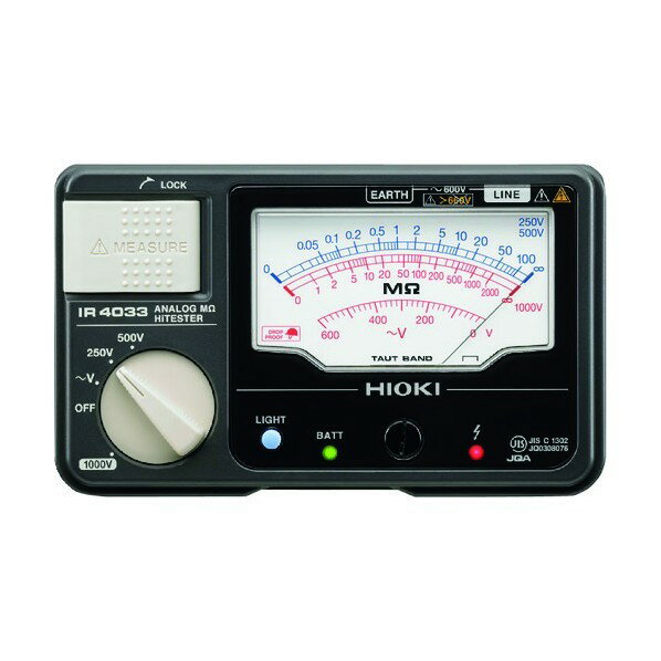 特徴 ■特徴 JIS C 1302認定品のアナログ絶縁抵抗計です。 1台で便利な3レンジ(250V/500V/1000V)モデルです。 先端長が35mmのテストリード(L9787)が付属しています。 1mの落下に耐える堅牢設計(ドロッププルーフ)です。 確実に測定値を読み取ることができるシンプルなスケールです。 危険な電圧の発生を知らせる活線警告赤色LEDを採用しています。 ■用途 絶縁抵抗測定に。 電気工事業務に。 ビルメンテナンス・設備工事に。 点検・保守業務に。 通信設備・計装設備に(新設工事・定期点検)。 設計業務に。 ■仕様 適合規格:JIS C 1302 認証、EN61010(安全)、EN61326(EMC) 測定レンジ(V):250/500/1000 機能:バックライト、ドロッププルーフ、電池電圧チェック、活線警告、放電機能、オートパワーセーブ(APS)、電池過放電防止機能 ■付属品 リードセット(L9787)×1 携帯用ケース(C0100)×1 単3形アルカリ乾電池(LR06)×4 取扱説明書×1 絶縁抵抗計 絶縁抵抗計 絶縁抵抗テスター メガー 仕様 重量 420.000G 入数 1点 原産国 日本 IR403310