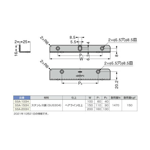 特徴 ■特徴 受け部が広く安定したL型の棚受です。 取付部が棚板に隠れ、すっきりとした納まりになります。 中央の穴が長穴のため、仮止め後、上下それぞれ2mmの調整ができます。 ■仕様 ヘアライン仕上、耐荷重1470N(150kgf) ■付属品 十字穴付き皿タッピンねじ3.5×16(ステンレス鋼) 十字穴付き皿タッピンねじ3.5×12(ステンレス鋼) ■材質 ステンレス鋼(SUS304) ■注意点 必ず側板に取り付けてください。 背板に取り付けると、荷重に耐えきれず脱落する恐れがあります。 強度のある場所に、しっかりと取り付けてください。 石膏ボードに取り付ける場合は、奥の芯材にねじ込むようにして取り付けてください。 耐荷重は棚板1枚あたりアングル2ヶ使いの数値です。 L字金具・アングル L型金物 L字ブラケット ジョイント金具 SSA200H(120027255)