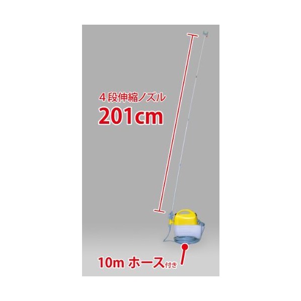 特徴 【特長】家庭用AC100V電源で使用可能なので電池切れを気にせず手軽に使えます。 直射と霧状の切り替え可能な長い201cmノズル付、高い木の消毒に。 【用途】薬剤散布に 【注意】使用後は必ずタンク一杯分水を噴霧して薬剤が残らないようにしてください。 【仕様】 タンク容量(L):10 主な用途:殺虫・消毒剤用 種類:電気式 ポンプ:ギヤポンプ 仕様:直射と霧状切り替えノズル、ホース10m付でラクラク移動 ノズル長(mm):630〜2010 噴口:消毒用2頭口(切替) 噴霧調整:泡状・粒状 ホース長さ(m):10 コード長さ(m):2.5 接続ねじ:噴口接続部:G1/4 パイプ接続部:M16 最高圧力(MPa):締め切り時:0.26 噴霧能力(mL/min):(一頭口)450/(二頭口)680 噴射能力(mL/min):(一頭口)570/(二頭口)740 使用距離範囲(m):噴霧時:約0.6、直射時:約2.5~4(斜め45度) 電圧(V):AC100(50/60Hz) 噴霧器 電動噴霧器 エンジン噴霧器 仕様 サイズ AC-100V カラー 黄.白 重量 4.4KG 材質 ノズル:PA6、POM、ノズルパイプ:アルミ、タンク:HDPE、ホース:PVC、パッキン:NBR、フッ素 原産国 中国 GT10V