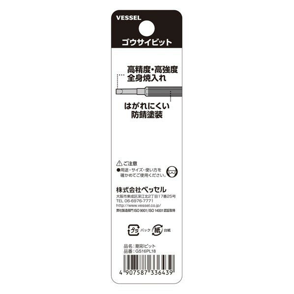 ベッセル 片頭 剛彩ビット(マイナス) -1.8×65 GS16PL18 2本