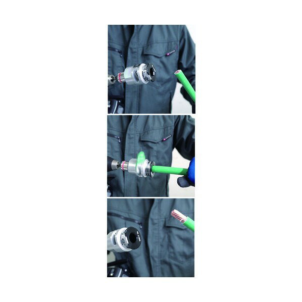 特徴 同スケア(mm2)ならアダプタ(3種付属)と刃の取付位置を選ぶことでIV、EM IE/F、HIV、KIV線に対応です。 アダプタは電線種類別にわかりやすく色分けし対象電線の記号も刻印、ワンタッチで交換可能です。 アジャスター式で任意の剥き幅を設定可能です。 替刃交換式で、調整なし、ネジ1本で簡単交換できます。 充電式ドリルドライバーに取付けて簡単スピーディに剥くことが可能です。 手動でも剥きやすいよう、指掛かりのある本体デザインです。 用途 IV、EM IE/F、HIV、KIV線の被覆はがしに。 対応ドライバー:3.6Vクラッチの状態でご使用ください 適合電線:IV線/HIV線、EM IE/F線、KIV線 全長(mm):100 適合ケーブルサイズ(mm2):14 ストリッピング能力(mm):10〜33 幅(mm):32 奥行(mm):32 高さ(mm):100 適合替刃:S 剥き幅(mm):10〜33 電設工具 仕様 サイズ 54 x 54 x 224 mm 重量 356 g 材質 ●本体:アルミ●刃:スチール 付属品 ●同スケア アダプタ3種 入数 1点 原産国 日本 DKMSDIV144019