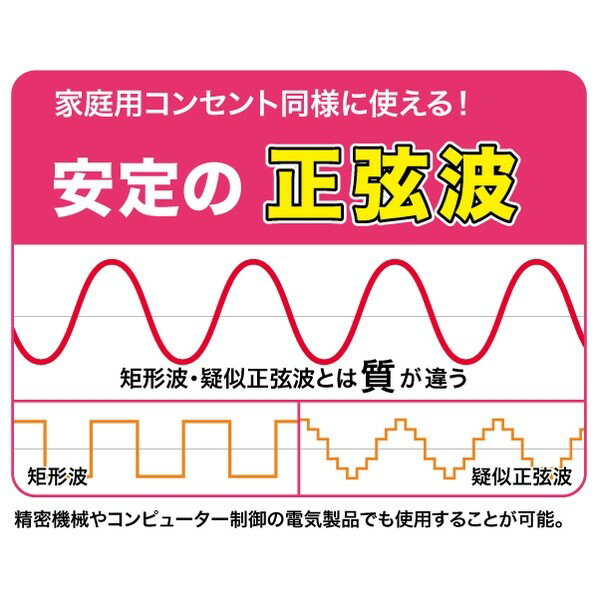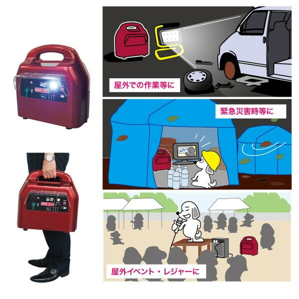 特徴 電源のない場所に必携 ●安定の正弦波! ・家庭用コンセント同様に使える! ●非常用電源として最適!(コンセントに挿しっぱなしOK) ●MAX 220W※1(10Wの照明×約20時間) ●屋外での使用もOK(防滴仕様) ●LED照明付(高輝度1w) ●入力2種:AC100V・ソーラーパネル(セットのみ) ●出力2種:AC100V・USB 5V ●持ち運びラクラク(約10kg) ●空気を汚さず静か □本体仕様 ●出力 ・AC:AC 100V/2.2A 50/60Hz※1 ・USB:DC 5V/2A※3 ・AC最大出力容量:220W※1 ・AC出力波形:正弦波 ●入力 ・ACアダプター:DC 25V/2A ・ソーラーパネル入力(セットのみ):DC 18~25V/3.6A ●充電※2 ・ACアダプター:約8~10時間 ・ソーラーパネル充電(セットのみ):約12~14時間 ●容量 ・鉛蓄電池:12V/20,000mAh ●使用環境条件 ・0~40℃(80%RH以下) ●サイズ ・W360×D180×H360mm ●質量 ・約10kg □ソーラーパネル仕様 ●使用環境 ・-10~40℃ 屋外用 湿度85%以下 IP44 ●保管温度 ・0~60℃ 室内常温 ●公称最大電力 ・90W※3 ●公称開放電圧 ・21.6V ●公称短絡電流 ・5.5A ●公称最大出力動作電圧 ・18V ●公称最大出力動作電流 ・5A ●出力ケーブル長 ・6m ●サイズ(突起部含まず) ・収納時 W63×D8×54cm ・展開時 W109×D60×H43 ●質量 ・約11kg ※1 出力容量は機器の力率や負荷特性、使用時の負荷などにより変動します。 ※2 充電時間は目安です。 使用回数、電池残量、使用状態、温度により充電時間は変化します。 ※3 発生電力は季節、場所、雲量、温度等により変化します。 PC-1Vの充電時間は最適条件時です。 ※3 すべてのUSB対応機器での動作を保証するものではありません。 スマートフォンの充電は、PC-1VのAC100V出力にスマートフォン用充電器を接続してご使用下さい。 メーカー名:ジェフコム、デンサン 仕様 入数 2個 PC1VSET
