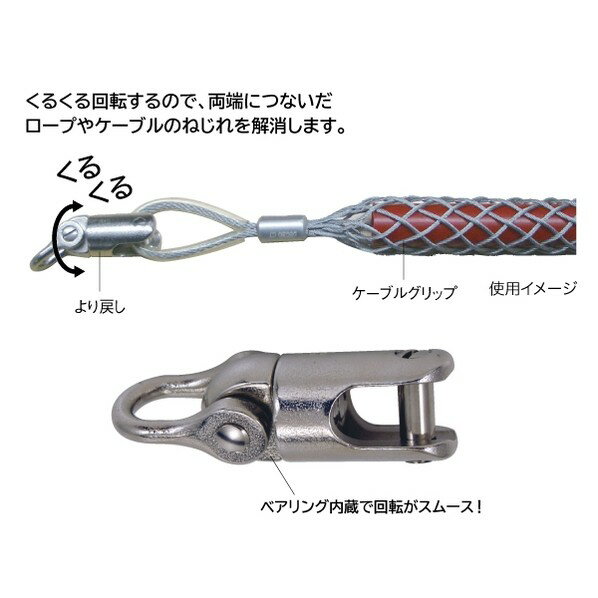 特徴 より戻し5個セット ●電線・ケーブルの通線作業に ●ベアリング内蔵で回転がスムース! ・くるくる回転するので、両端につないだロープやケーブルのねじれを解消します。 ●セット内容 ・DK-4K ・DK-7K ・DK-10K ・DK-15K ・DK-20K ●材質 ・収納ケース:PP ・本体:スチール メーカー名:ジェフコム、デンサン 仕様 カラー 50000 重量 1300g 入数 1個 DK0420KSET