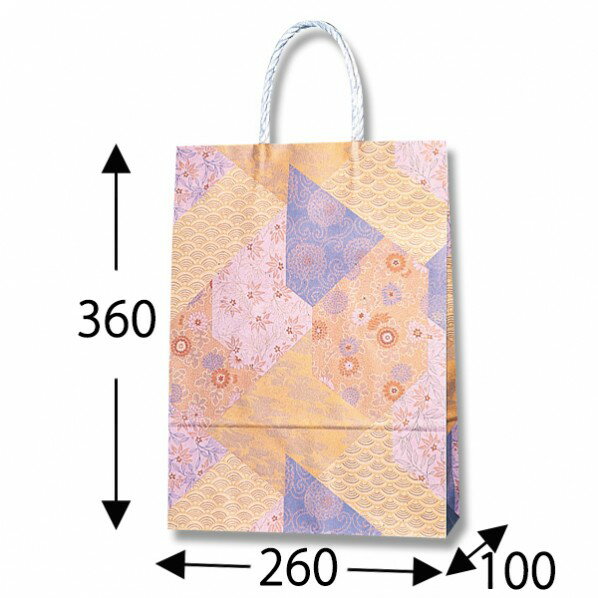特徴 樹脂製の接着剤で手紐を取り付けた手提げ紙袋です。 紐の結び目がなくすっきりし、物の出し入れがスムースで、ストックする際にかさばらないメリットがあります。 中型で、A4縦ゆったり目のスタンダードサイズ。 昔から伝わる和柄の生地をつなぎ合わせたイメージのデザインです。 手紐:PP紐白 仕様 サイズ 260×マチ100×360mm カラー ツヅレ 入数 25枚 003155704