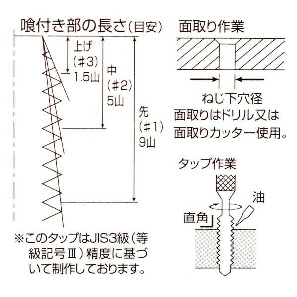 特徴 【特長】 電動インパクトドライバー対応。 止り穴ねじの加工に最適。 切りくずがコイル状にカールする被削材に適しています。 【用途】 ナット等のメネジを作ったり、修正するときに。 【仕様】 ・適応機種:正逆回転機能付き機種 ・材質:HSSco ・タイプ:ステンレス用タップ・止り穴用 ・コーティング:コバルトコーティング ・軸径:6.35mm(六角軸) ・下穴径:5.0mm ・ねじ径:6M ・ピッチ:1.0mm 仕様 入数 1個 M6x10