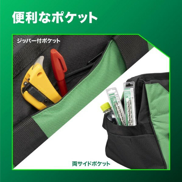 HiKOKI(ハイコーキ) ツールバッグ(L) 収納 持ち運び バッグ 00383371 幅480mm×高さ300mm×奥行300mm アグレッシブグリーン 0038-3371 1台