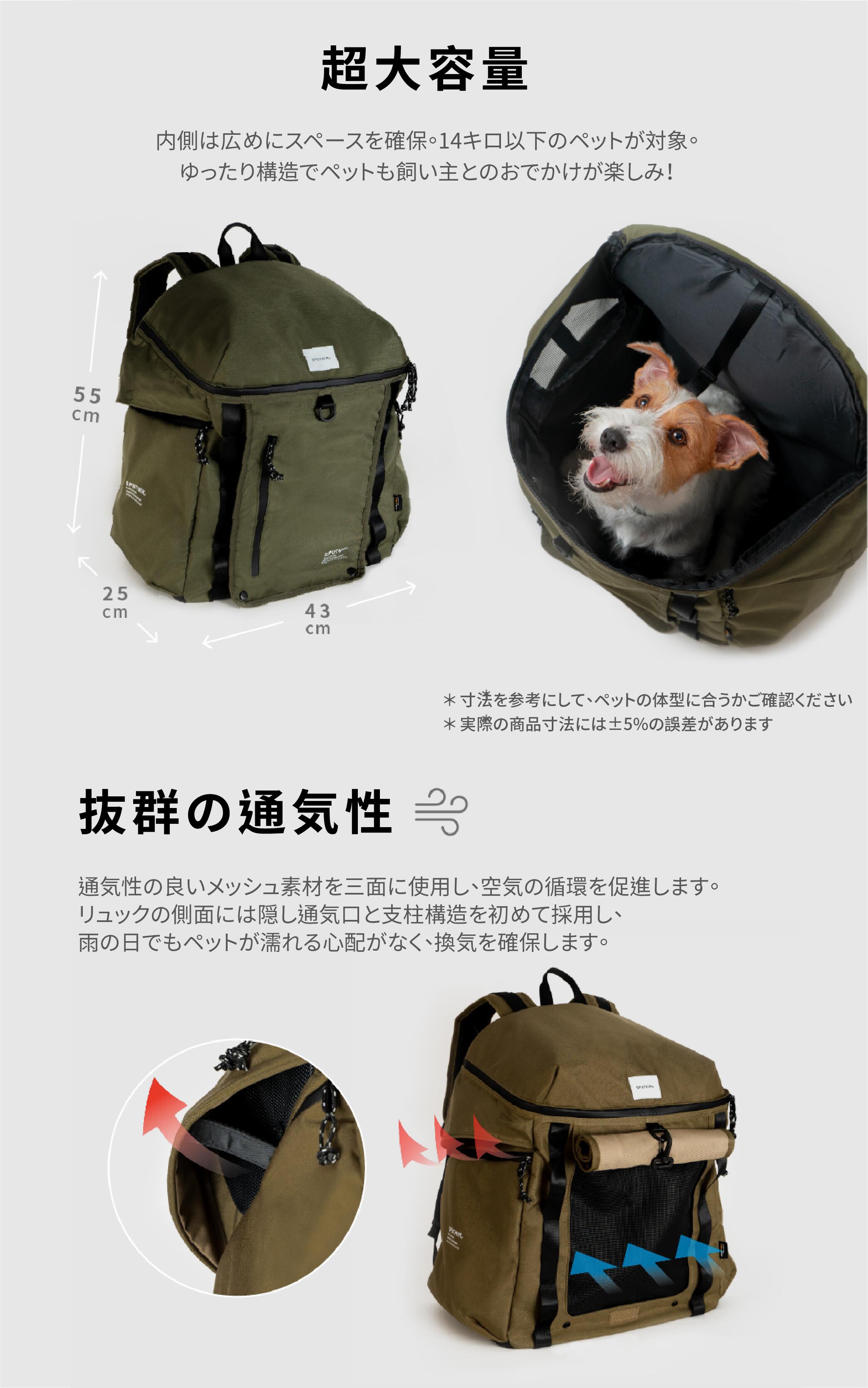 商品情報 商品名 ペット用キャリーリュック カラー カーキグリーン、グリーン サイズ L43cm × W25cm × H55cm 重量 1.7kg 産地 中国 海外購入の注意事項 1.個人情報のお取扱いについて 当店は、インターネット通販で取得したお客様の個人情報を、当店からのお知らせや配送業者への委託にのみ使用し、無断で第三者に譲渡・漏洩しません。安心してご利用ください。ただし、法的機関からの提示を求められた場合はこの限りではありません。 2.個人輸入について ● 当店の商品は「個人輸入」として、台湾から直接お客様にお届けします。配送手続きのため、台湾の事業者にお客様の注文情報が提供されますので、同意の上でご注文ください。個人輸入の商品は「個人使用・個人消費」が前提で、第三者への譲渡・転売は禁止です。 ● 当店の商品に関する注意事項として、楽天市場の税金についてお知らせいたします。詳細は以下のリンクをご参照ください:税金に関するお知らせ ・商品価格・保険料・送料等の合計金額が16,666円以下の場合は通常、関税や消費税は免除されますが、16,666円を超える場合は消費税(10%)および関税が課税される可能性があります。 ・課税の有無は税関の判断によるため、当店では事前に確定することはできません。商品の種類や税関の判断によって異なるため、正確な金額を予想することは難しいです。 3.キャンセル・返品・交換について ● お客様都合によるキャンセル: ・ご注文から30分以内は、理由の有無を問わずキャンセル可能です。 ・ただし、以下の場合はキャンセルできません: 楽天会員登録を利用していない注文 予約購入/定期購入/頒布会の注文 配送日時指定で最短お届け日を指定している注文 ● 特別なご事情によるキャンセル: ご注文後24時間以内にご連絡ください。24時間を過ぎるとキャンセルが難しくなります。 ・ 商品到着後は中身をご確認ください。特に不具合がある場合は、必ず写真を撮ってください。 ・お客様のご都合による返品・交換は承れません。 4.配送について ご注文確定後(お支払いが完了し、システムにてご注文が確定された後)、7営業日以内に発送いたします。 発送完了後、通常1週間程度でお届け先に到着する見込みです。 したがって、ご注文確定からお届けまでの期間は、通常15日前後となります。組み合わせて楽しめる!SPUTNIKシリーズ商品 ハーネス リード 首輪 フードボウル プープバッグポーチ