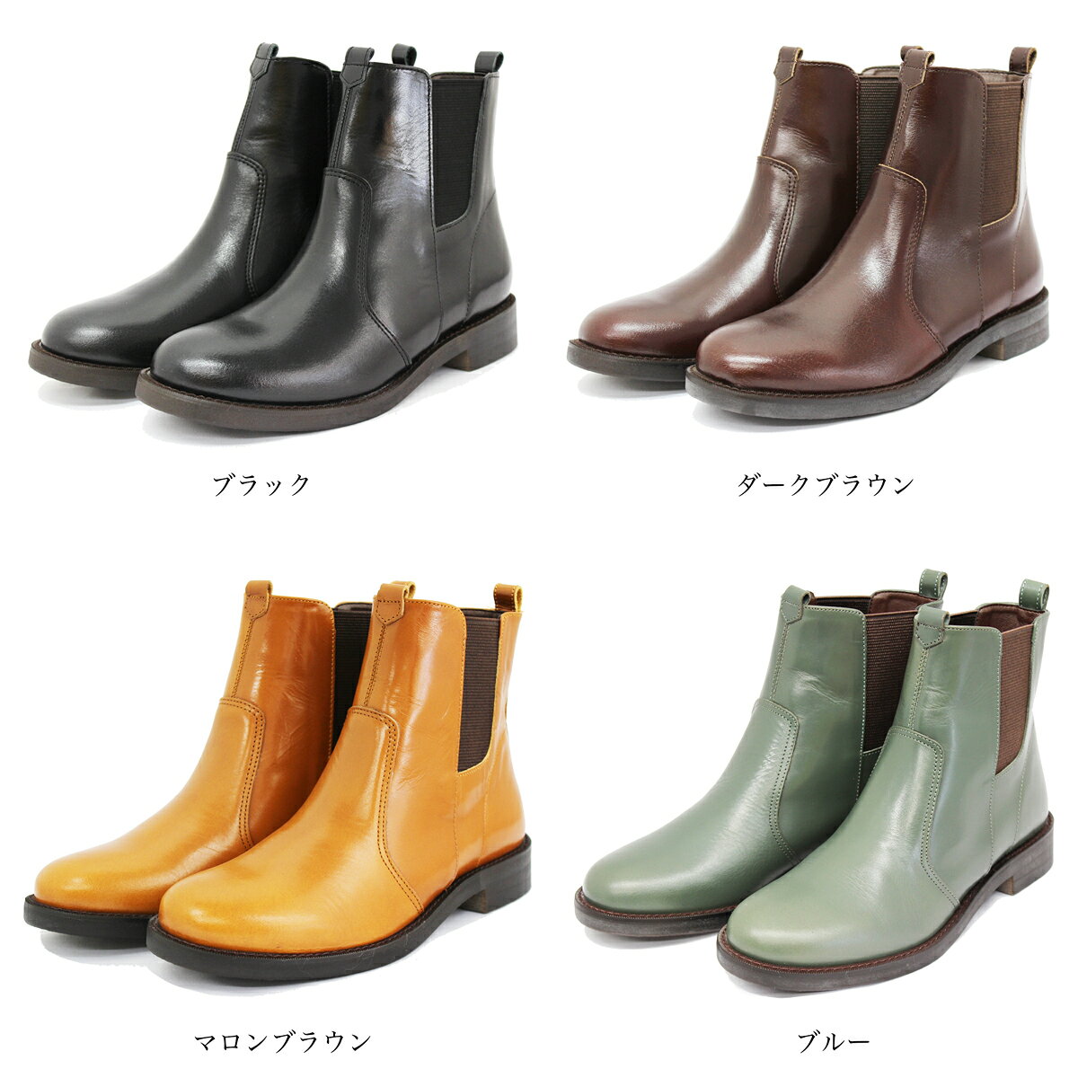 【返品・交換初回無料】神戸国産 日本製 本革 レディース サイドゴアショートブーツ ブラック ブラウン ラウンドトゥ ローヒール シンプルブーツ【送料無料】【代引手数料無料】【TODAY'S トゥデイズ】(5529)