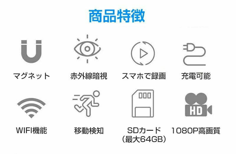 商品名 防犯カメラ 商品特徴 豪雨に耐える防水設計、屋外も安心です。ロック機構でしっかり密閉 豪雨や暴風・塵・埃にも負けません 玄関やベランダなどに、邪魔にならず簡単に設置できる防犯カメラを探している方に最適な屋外監視カメラです。 近距離でも高画質で鮮明な動画撮影が可能なWiFi防犯カメラ。小さく見づらかったナンバープレートや人の顔までくっきり写すことができるトレイルカメラです。屋外防犯カメラとして、より鮮やかで明るい質感での撮影が可能です。 このトレイルカメラは昼夜の撮影モード切り替えは自動で行われるので、便利です。夜間の駐車場や庭のイタズラ防止に使用したり、野生動物を観察したりなど、幅広く活用できます。 この屋外防犯カメラのモニターに日付、時刻等もしっかり表示できるのでいつのどんな映像かが一目瞭然です。 0.2秒トリガースピード。トリガースピードが遅いため、シャッターを切った頃には、被写体がフレームアウトしてしまった。 決定的な瞬間をとらえないといった悲しい経験がありますか。 屋外wifi防犯カメラとして、自宅周辺で使用する場合、Wi-Fi接続が便利で、わざわざSDカードを抜き差ししなくても動画を確認できます。他の防犯カメラとして設置しているトレイルカメラより、使いやすいです。 センサー検知してから、3種類の録画モード(動画モード、静止画モード、両方の組み合わせ)が用途に合わせて録画モードを自由に選択できます。 タイムラプス撮影機能で、設定した間隔で動画また映像を自動的に撮影できる電池式防犯カメラです。 音声マイク・スピーカー内蔵で録画の音声もすぐ確認できます。 人感センサーの感度を周囲の環境に応じて設定が可能で、野生動物の撮影だけではなく、屋外防犯対策や不法投棄などの監視、盗難 様々な用途で利用される屋外wifi防犯カメラです。 初心者にも簡単で使い勝手の良い屋外監視カメラ。敷地のイタズラ、ゴミの不法投棄、空き巣 、狩猟獣害対策など屋外防犯、監視カメラとして、定点監視、野生動物撮影用自動撮影カメラとして使えます。