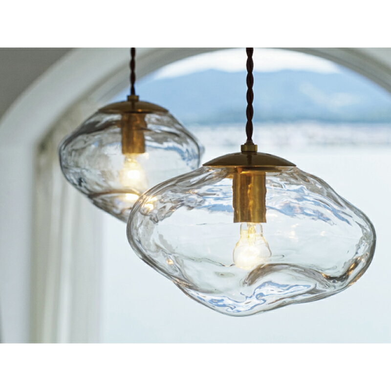 空に浮かぶ雲からインスピレーションを 受けデザインされたペンダントライト。 ガラスに反射する光の揺らぎが情緒的な 雰囲気を醸し出します。 ●サイズ:約W23×H15×D17cm コード全高31-110cm ●重量:1.2〜1.3kg ●素材:ガラス、スチール ●点灯:壁スイッチ(点灯→消灯) ●装着可能電球: 白熱球: E17/60W クリアミニクリプトン球 LED電球: E17/40W相当 小型LED電球(電球色) 消費電力4.4W ※外径37mm以下の電球をご使用ください。 ※製造工程上、ガラス側面等に接合線があります。 品番:LT-4264 LT-4265 LT-4266 JANコード: 4994371426421 4994371426520 4994371426629 4994371426490 4994371426599 4994371426605 4994371426483 4994371426575 4994371426681 販売元:INTERFORM INC.(インターフォルム) ショップ:ココラージュ cocollage