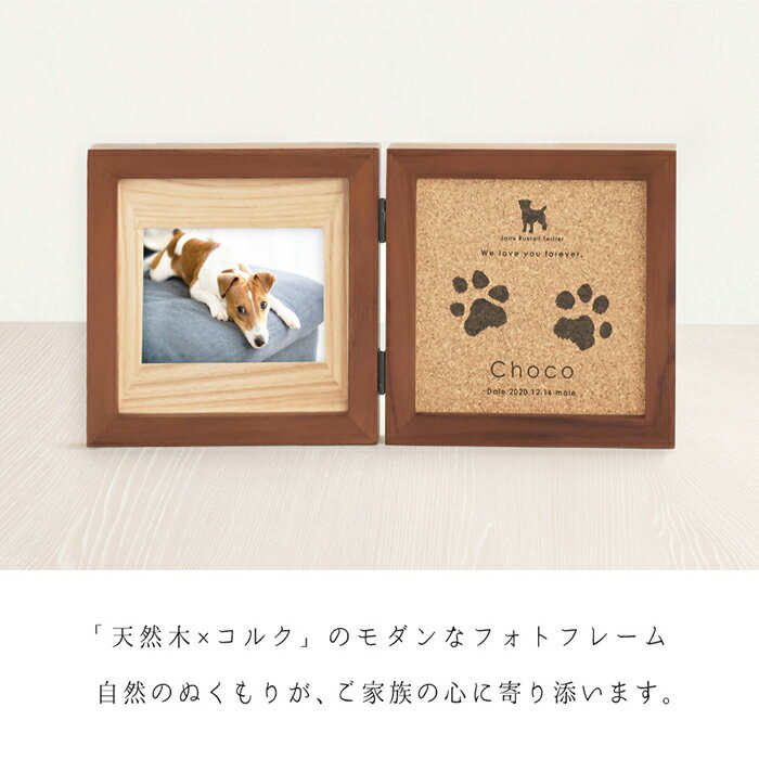 \超お得な10%OFFクーポン配布/ うちの子記念日・コルクウッドフレーム/ペット 写真 オリジナル グッズ メモリアルグッズ ペット 足型 記念 肉球 スタンプ キット インク パット汚れない ペット 遺影 位牌 仏壇 供養 写真立て フォトフレーム アクスタ 愛犬 愛猫 誕生日