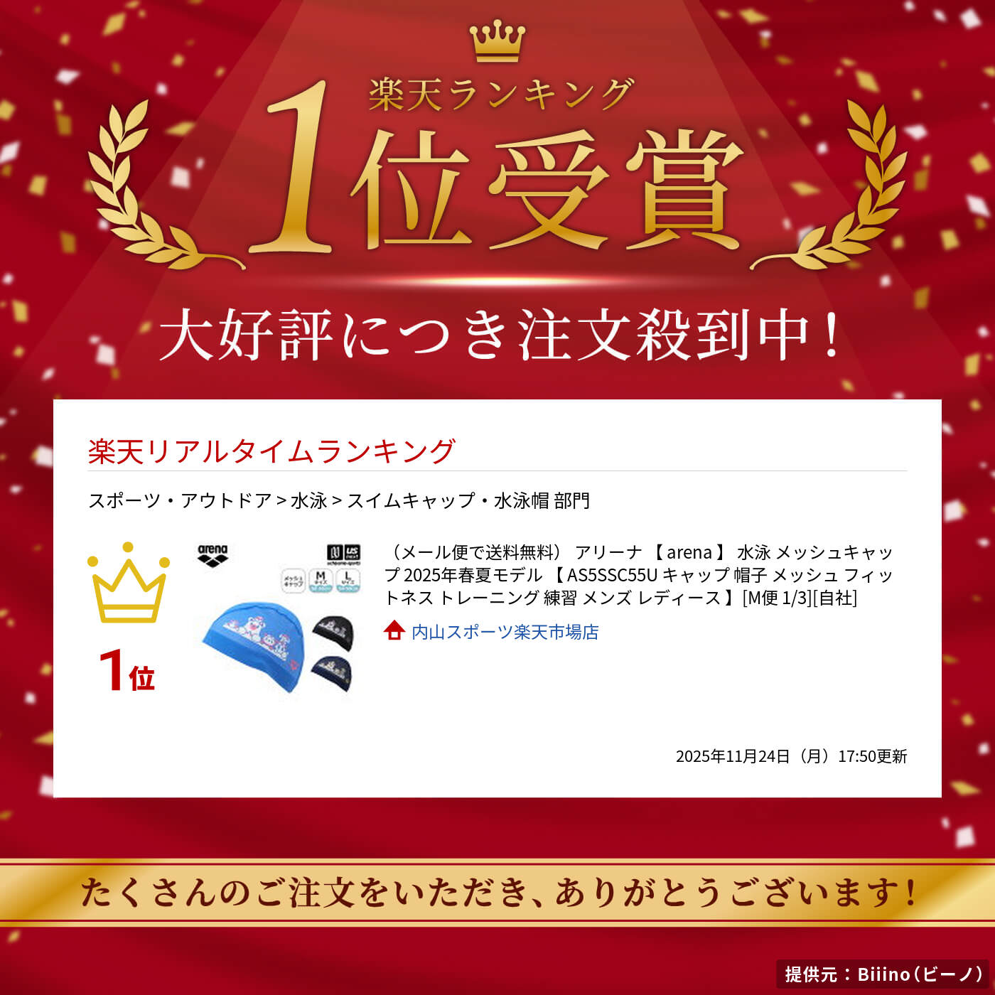 メーカー希望小売価格はメーカーカタログに基づいて掲載しています item-Information 【商品詳細説明】 ■メーカー アリーナ(arena) ■品名 メッシュキャップ ■品番 AS5SSC55U ■サイズ M(50cm-55cm) L(54cm-59cm) ■カラー BKPP(ブラック) BLPK(ブルー) NVYL(ネイビー) ■品質 メッシュ ■素材 ナイロン80%、ポリウレタン20% ■生産国 日本 ■商品説明 アリーナくんと仲間たちが仲良く並んでこちらを覗いているイメージを可愛らしくデザインしたメッシュ素材のスイムキャップ。 水抜けが良く、ハードなトレーニングでもムレ感がなく快適に泳ぐことが可能に。 ハードなトレーニングするスイマーにも、ゆったり泳ぎたいスイマーにも、練習時の着用におすすめです。 ●公式大会使用可 ■検索用キーワード アリーナ arena デサント DESCENTE 水泳 スイミング プール プールスイム スイム 泳ぐ 泳ぎ 水泳部 部活動 部活 チーム クラブ 習い事 フィットネス エクササイズ プールエクササイズ アクアウォーキング アクアウオーキング アクアビクス トレーニング 練習 スイマー キャップ 帽子 スイムキャップ スイミングキャップ メッシュキャップ メッシュ アリーナくん アリーナ君 キャラクター かわいい 女性 レディース レディス LADIES ウィメンズ ウイメンズ WOMENS 男性 メンズ MENS MEN 男女兼用 ユニセックス UNISEX 母の日 父の日 敬老の日 黒 ブラック 紺 ネイビー 青 ブルー スポーツ用品は内山スポーツ ■メール便対応【アリーナ/arena】