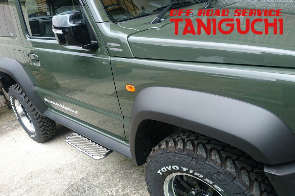 *OFF ROAD SERVICE TANIGUCHI*2段調整サイドステップ ステンレス シエラ JB74用 ジムニー シエラ JB74 1・2・3型 右(運転席側)用。 純正オーバーフェンダーからはみ出さない設計で車検OK。 サイドアンダーガーニッシュの外側より出幅約5cm、下端より約9cmと約6cmの位置にステップ面高さを2段階で取り付け可能。 穴あけ不要でボルトオン装着。 スチール製黒塗装品。 ●対応発送方法:宅配便(代引き不可) 本州/四国/九州:1980円 北海道・沖縄・離島:お見積もり