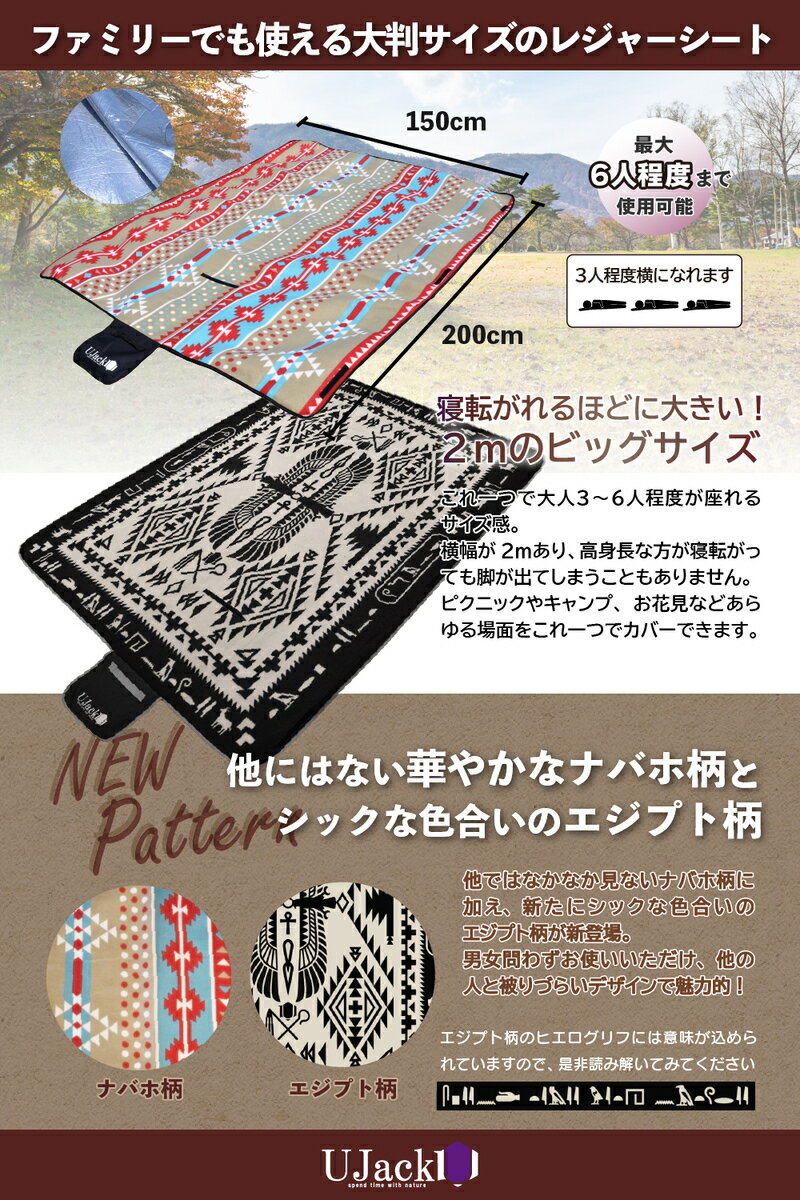 UJack(ユージャック) 厚手 レジャーシート 軽量 防水加工 連結可能 (200cm x 150cm) エジプト柄