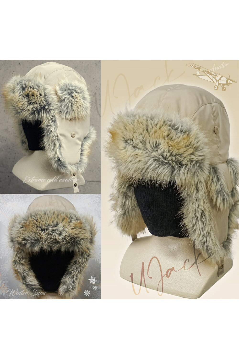 商品情報サイズFree Size(67cm)素材構成本体・内側:100%ポリエステル、ファー:100%ポリエステル ※フェイクファーの使用為、初期使用時にファーの抜け毛が気になることがございます。[ユージャック] パイロットキャップ ロシア帽子 防寒 耳あて付 冬 ファーライニング スキー アウトドア 男女兼用 キャップ ロシア帽 【UJack-Onlineはメーカー直販売!だから安くて高品質!】 ロシア帽、ウシャンカ、アビエーターキャップ、フライトキャップ、パイロットキャップ、トラッパー、ボンバーハット、ウインタースポーツ、エクストリームコールドウエザー キャンプ、アウトドア等、寒い季節の作業などほか、実用性の高い防寒帽子として飛行士にも愛用された耳覆いのある帽子です。アウトドアシーンやファッションアイテムとしても、個性と実用性を兼ねた注目のアイテムです。フェイクファー部分はやわらかく毛足の長い素材を使用し、手触りだけでなく防寒性においても十分な密度を備えています。イヤーカバーをあご下で留めたり、持ち上げて真上や斜め後方でスナップ止めすることで、フィット感が変わりますのでお好みで選んで着用することができます。両サイドにメッシュ付きのイヤーホールを備えており、耳覆いのフラップは開閉いずれの状態でもボタン止めが可能です。帽体の内側は湿気を感じにくいさらっとした表面の生地でキルティング加工がされ、内部の快適さを保つよう工夫されています。 正面のカフ(折り返し)はスナップにより降ろすことができ、仮眠・就寝時のアイマスク代わりとしても使用できます。・量感のあるフェイクファーをふんだんに使用。 ・内部キルティング生地は吸水性、速乾性、快適性に優れる麻に似た仕上がりの織。 ・メッシュ付きのイヤーホールと開閉フラップ付 ・耳覆いのあご紐はスナップ止めにより、あご下、頭頂部、後頭部の位置で留めることができます。 ・正面のカフ(折り返し)はスナップ留めより仮眠時などにアイマスク代わりに下げることができます。 ・UJackマークのピンバッチ付属 (ピンバッチはバッグやエプロン、ウエア等につけてお楽しみください。この帽子につける際は、安全のため頭部の生地の薄い部分には絶対につけないでください。他のキャップなども含め、直接頭部に接する部分に付けると物が当たった際に大変危険ですのでおやめください。) ・本体・内側:100%ポリエステル、ファー:100%ポリエステル ※フェイクファーの使用為、初期使用時にファーの抜け毛が気になることがございます。 ・フリーサイズ(67cm) ・Made in china 2