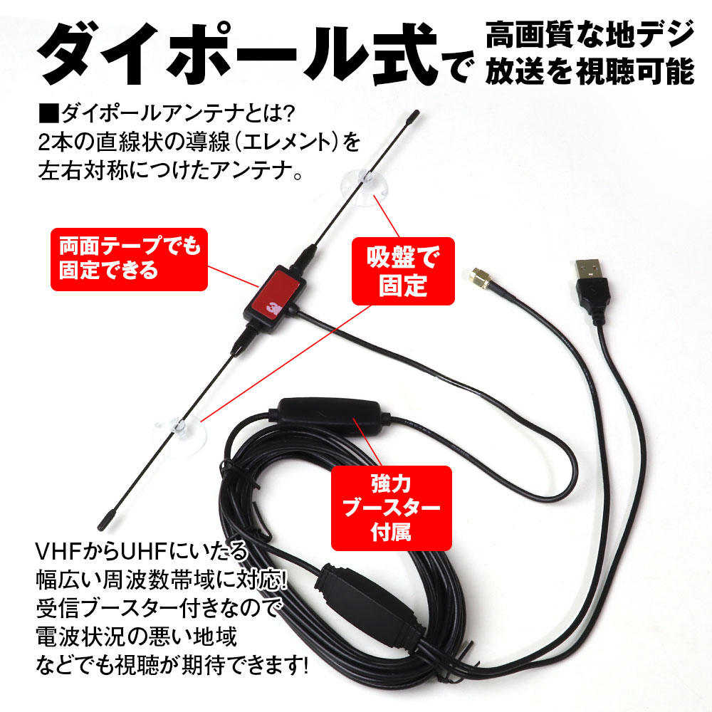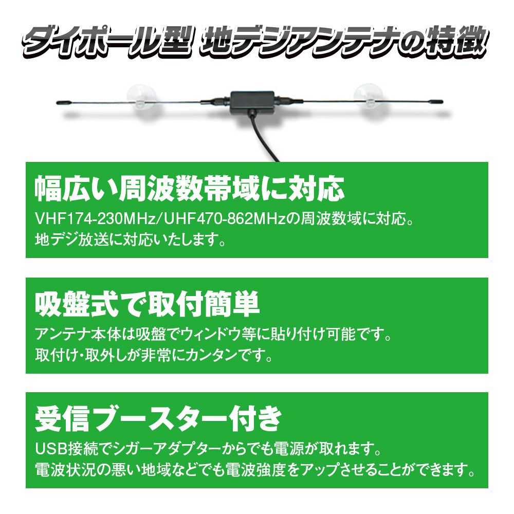 アンテナ 車載 ダイポール ダイポールアンテナ 地デジアンテナ 高感度 ブースター内蔵 吸盤付き ロッド SMA端子 TV テレビ ワンセグ フルセグ