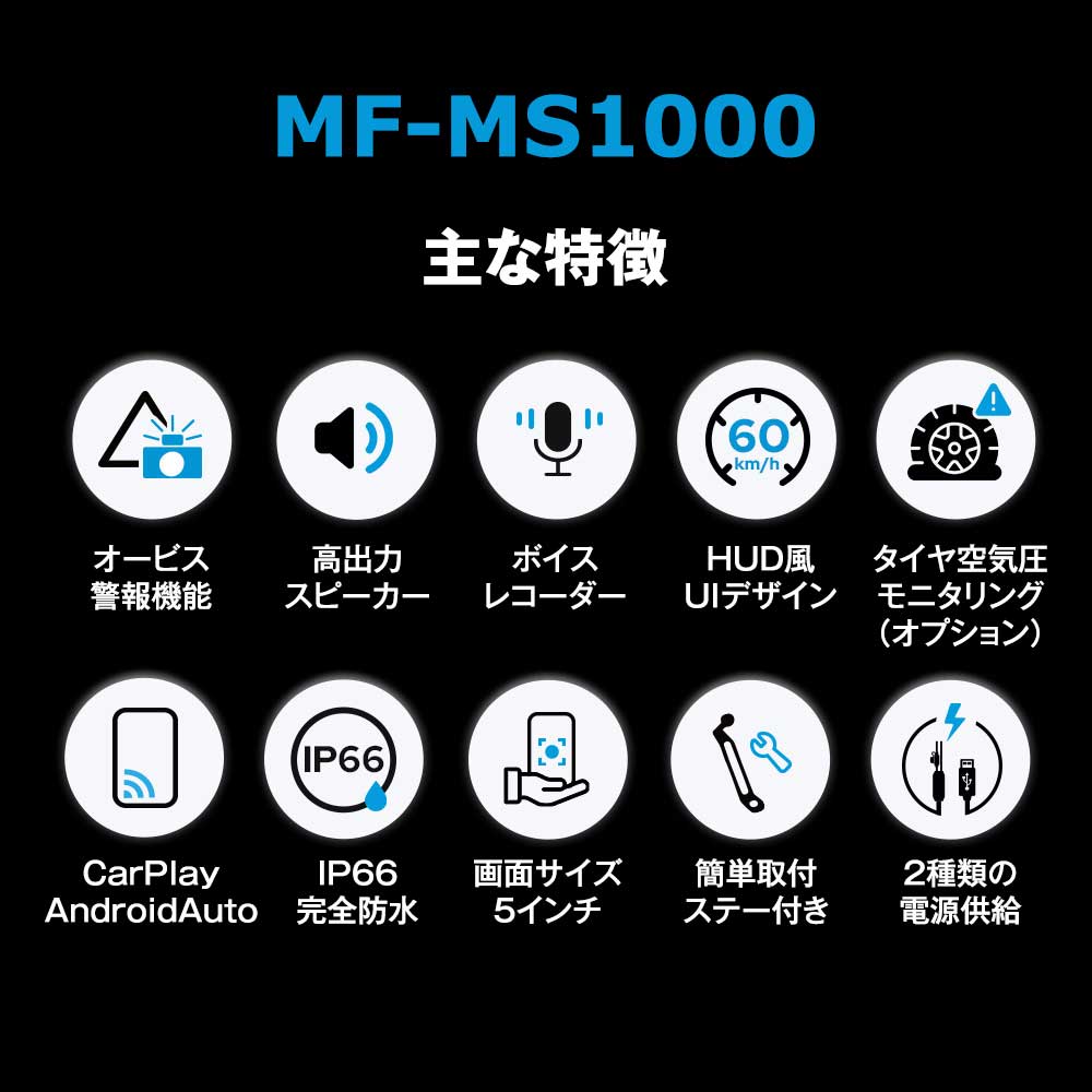 バイク ディスプレイオーディオ バイクナビ スマートモニター カープレイ ミラーリング スマホ連動 AndroidAuto iOS CarPlay 12V 5V GPS 速度警告 オービス Bluetooth 防水 MUFU MF-MS1000