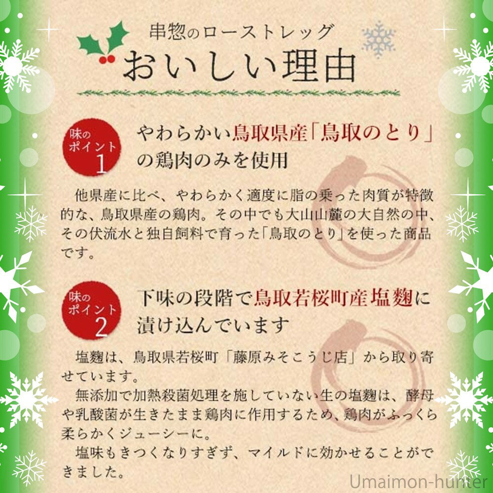 【冬季限定】鳥取のとりローストレッグ 225g 10本セット クリスマス 串惣 鳥取県産鶏肉使用 タレ焼き 惣菜 お取り寄せ