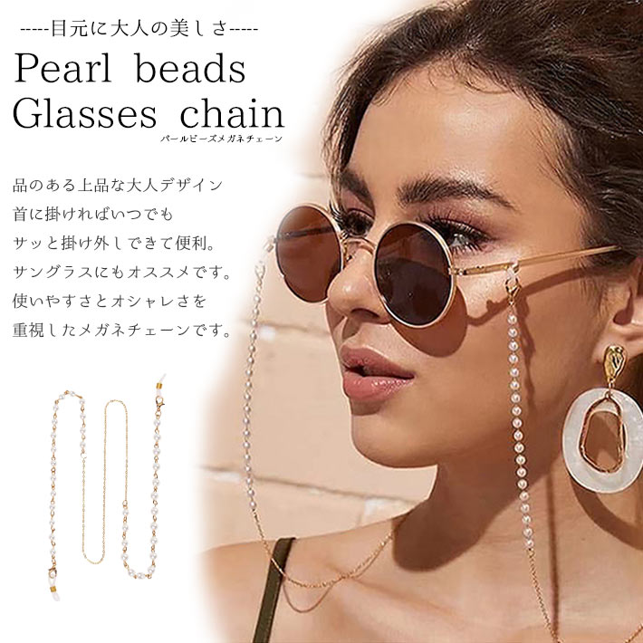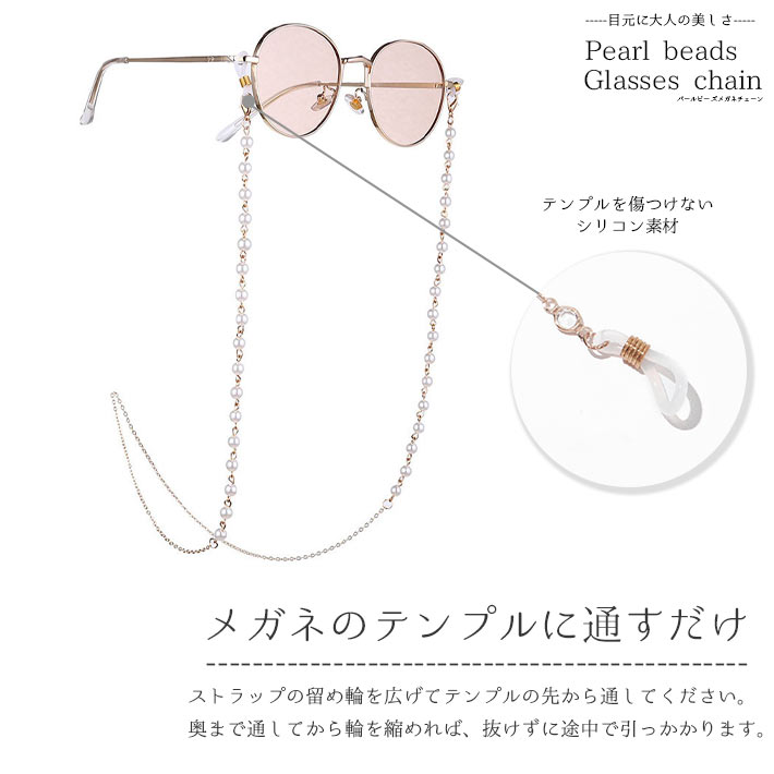 眼鏡チェーン <パールビーズ> おしゃれ 【全3色】 レディース メガネストラップ メガネ紐 メガネチェーン グラスコード 女性用 金属