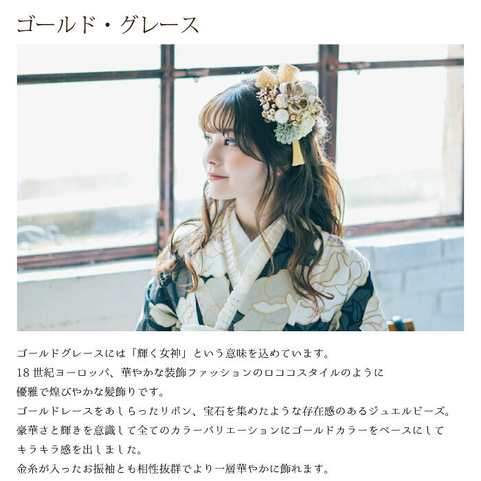 【4日〜スーパーSALE10倍】 髪飾り Arenca ゴールド・グレース | 玉 ヘアーアクセサリー ヘアアクセサリー ヘアピン Uピン 和風 タッセル 振袖 成人式 着物 卒業袴 袴 卒業式 浴衣 マム ちりめん 髪飾り 白 黄 緑 水色 紫 ピンク 造花 花冠 ヘッドドレス セットアップ