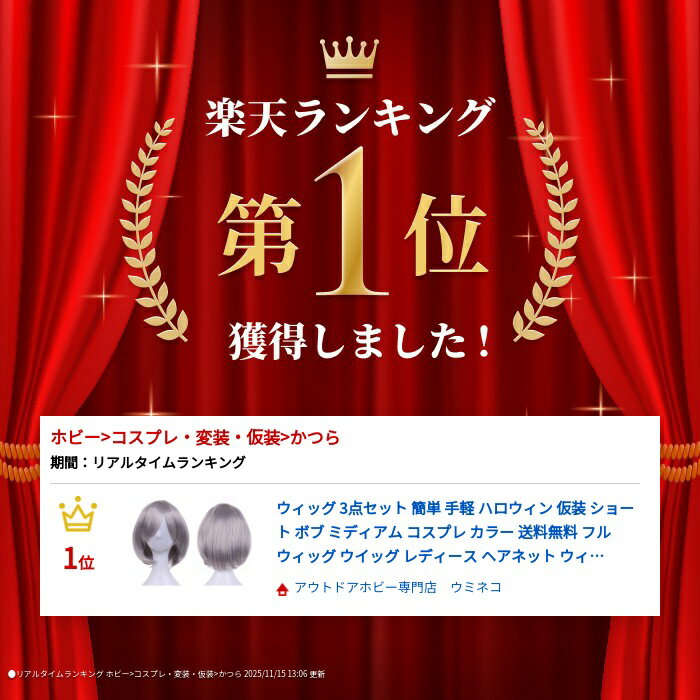 ※弊店ウミネコは【 適格請求書発行事業者 登録済 】です。【 インボイス 対応 領収書 発行可能 】です。■この商品のイチオシポイント♪ きれいな発色で豊富なカラーのフルウィッグシリーズ。 コテ、アイロン可能なのでアレンジの幅が広がります♪ ウィッグは他にもロングカール(巻き髪)、ロングストレート、 ボブ、ショートウルフなどを取り揃えております。■サイズ 前髪 つむじから約30cm 後髪 つむじから約35cm 頭周 約56cm アジャスターにて3段階調整可能 ※製品によっては若干の誤差が見られる場合がございます。■素材 180度耐熱ファイバー(ヘアアイロン180℃まで)■その他仕様 アジャスターで3段階のサイズ調整可能。 前髪分け目自由。 コテ、アイロン、ドライヤー使用可能。 シャンプー、髪染め、パーマも可能。■セット内容 ウィッグ ヘアネット ウィッグスタンド■カラーバリエーション イエローゴールド ウォーターブルー グレーホワイト コーラルピンク スノーホワイト ナチュラルブラウン ピュアブラック プラチナシルバー ホワイトゴールド レッドチェリー ロイヤルパープル ※お使いのモニターによっては画像と実物の色が若干異なる事があることをご了承ください。■梱包方法について 発送方法について中身が見えないように梱包します。 具体的な商品名は記載せず「IRUI」または「衣類」と記載してお送りいたします。【関連キーワード】10代 1万以下 20代 20代後半 30歳 30代 30代女性 40歳 40代 40代人気 50代 50代メンズ 60歳 60代 70代 80代 アウトドア あうとどあ アウトドアブランド あすつく あす楽 ウィメンズ おじさん おしゃれ オススメ おすすめ おんなのこ お出かけ カジュアル かっこいい カメラ かわいい ガーリー キッズ きっず ギフト きれいめ クリスマス クリスマスプレゼント ゲーム こども コンパクト ご褒美 ジュニア シンプル スキー スケート スタッフ愛用 ずっと使える スポーツ セール はやり バーゲン プレゼント プレゼント用 ブログ メール便 ゆうパケット ゆうメール リーズナブル 安い 安価 安売り 夏 夏物 画像 格安 機能性 軽 軽い 軽量 激安 限定 交換 口コミ 最新 使いやすい 手頃 秋 春 小物 新作 人気 人気ブランド 専門店 送料無料 即日 出荷 即日発送 多機能 誕生日 誕生日プレゼント 男 男の子 男子 男児 男女兼用 男性 男性用 着まわし 注目 定番 冬 当日 出荷 年代 年配 彼氏 彼女 評価 評判 父の日 便利 母の日 郵送 翌日着 翌日配送 流行 流行ってる 流行り 賞品 景品 インスタ 映え バレンタイン バレンタインデー ホワイトデー 卒業 祝い 就職 入学 ラッピング ラッピングサービス ラッピング対応 ラッピング可ウィッグ 3点セット 簡単 手軽 ハロウィン 仮装 ショート ボブ ミディアム コスプレ カラー 送料無料 フルウィッグ ウイッグ エクステ キュート レディース かつら つけ毛 コスプレ 原宿 イベント パーティー 新年会 忘年会 ヘアネット ウィッグスタンド おまけ付 コスチューム アニメ お揃い グループ 金髪 黒髪 白髪 かわいい 激安 プラチナシルバー ★限定★今だけ全品 送料無料 激安 タイムセール★即日発送可★あす楽対応★ディズニー お揃い 簡単 手軽 グッズ 個性的 セクシー 大人女子 可愛い カップル ペア おそろい レディース メンズ ジョーク お笑い ホラー フリフリ ゴスロリ 限定 送料無料 花 人気 最大 ポイント10倍 小悪魔 魔女 不思議の国のアリス 海賊? 商品情報 ■納期についてスピード一番!即日出荷いたします! 【土日祝も毎日発送】15時までのあす楽対象のご注文は即日出荷致します! ■店長のコメントPUMPKIN PARADE by UMiNEKO パンプキンパレードへ ようこそ!!!パンプキンパレードでは定番のかぼちゃ、メイド衣装をはじめ、 誰でも着用できる様に【簡単】【お手軽】【お手頃価格】をテーマに各種ハロウィン衣装を取り扱っております!!「どんな衣装を選んだらいいかわからない。」 「本格的な衣装はちょっと敷居が高いなぁ...」「とにかく安く買い揃えたい!!」 という方に手軽に楽しんでいただくために、 海外の工場から 直取引&直輸入することでコストを大幅削減し、 お試し価格でご提供することができております。 どうぞお時間の許す限り、じっくりとご覧下さいませ。 それではお客様がにぎやかで楽しく想い出に残るハロウィンを楽しめすように♪パンプキンパレード byウミネコ スタッフ一同■この商品のイチオシポイント♪ きれいな発色で豊富なカラーのフルウィッグシリーズ。 コテ、アイロン可能なのでアレンジの幅が広がります♪ ウィッグは他にもロングカール(巻き髪)、ロングストレート、 ボブ、ショートウルフなどを取り揃えております。■サイズ 前髪 つむじから約30cm 後髪 つむじから約35cm 頭周 約56cm アジャスターにて3段階調整可能 ※製品によっては若干の誤差が見られる場合がございます。■素材 180度耐熱ファイバー(ヘアアイロン180℃まで)■その他仕様 アジャスターで3段階のサイズ調整可能。 前髪分け目自由。 コテ、アイロン