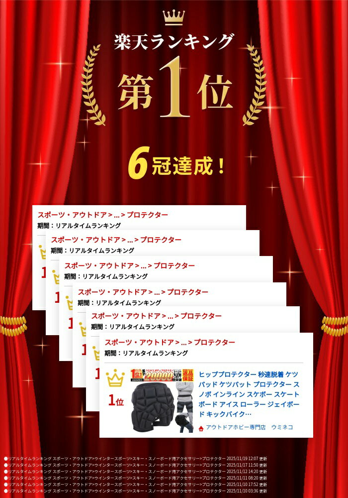 ※弊店ウミネコは【 適格請求書発行事業者 登録済 】です。【 インボイス 対応 領収書 発行可能 】です。 ラッピング ラッピングサービス ラッピング対応 ラッピング可商品情報■納期についてスピード一番!即日出荷いたします!【土日祝も毎日発送】15時までのあす楽対象のご注文は即日出荷致します!■■■店長のコメント■■■■シリーズ累計販売数20,000個突破!!ウミネコ ボディプロテクターシリーズが遂に…シリーズ累計販売数20,000個突破いたしました!!これからもお客様に大満足いただけるようスタッフ一同頑張って参ります!!いつも本当にありがとうございます!!もう迷わせない!全人類がよろこぶ!!そんなプロテクターができました!!!!■ウミネコのプロテクターのスゴイ機能・パッパッパッと異次元の秒速着用!!・フィットするしなやか設計でトリックがキマる!!・大事なお尻と腰を徹底的に守護るッ!!・業界最厚クラス!!約3cm極厚の耐衝撃吸収パッド!!・転んでも痛くない!!転ぶのが怖くない!!アイスバーンもコンクリートも怖くない!!・ダボッとしたズボンならインナーとしても着用可能!!・ジュニア・キッズレディース対応サイズあります!!・グラトリが楽しい!!パークデビューもOK!!グラトリが楽しい!!パークデビューもOK!!・脱ぐのも楽らく!!面ファスナーをバリッと剥がすだけ!!・子供にも履かせやすくて嬉しい!!お尻にあてがって面ファスナー留めるだけのスピード着用!!・使ってみてからでも返品できるのが安心!!■こんなお悩みはありませんか?・まだ初心者だし・・・コケたら痛そう!痛い思いはしなくないなぁ。・怪我が怖くて思い切りトリックに挑戦できない・・・だけど挑戦したい!・もっと簡単にプロテクターを着用できたらもっと手軽に楽しめるのに!・今年はジブ・キッカー・ランプ・パークにも挑戦するぞ!・でも結局どんなプロテクターを選んだらいいかわからない…・履くタイプのプロテクターは窮屈に感じる。動きづらそう!・ズボンを脱いでからプロテクターを履くって面倒。・子どもにプロテクターを履かせるのが大変(泣)・汗だくになったプロテクターが脱ぎづらくてストレス!・プロテクターを共有したいけどパンツタイプは手間がかかる!・かといって人数分のプロテクターを買うのはちょっと高い…(汗)・安価なプロテクターはパッドが薄いし破れやすそうで心配…・本格的なプロテクターはちょっと敷居が高い…・スノボ、スケート、キックボード、ジェイボード、キックバイク、釣り、アウトドアで使えるプロテクターを探している。安心してスポーツを楽しんで頂きたい!!だから!!そのお悩みすべてウミネコが解決します!!■ウミネコが求めた品質とは・・・秒速着用ピッタリフィット!!すぐ遊べる!!らくらく脱着設計で服の上からすぐに履ける!10秒後にはすぐに遊べる!やんちゃなお子様にもサッと履かせられる!最厚クラスの約3cm極厚パッドで全尻と腰を保護!!徹底的に守護れる!!お尻をつくのが怖くなくなる!だからもっとうまくなる!もっと楽しくなる!貴殿の「上手くなりたい」を徹底応援!「痛くない」という安心感があるからもっとたくさん練習できる!もっと上手くなれる!独自のしなやか設計でトリックがキマる!!ブロック状のパッド配置の超ストレッチ構造だから体の動きに合わせてしなやかに動きます。からだの自由な動きを妨げないから上達も早まります!サッと脱げる!片付けもシェアもしやすい!面ファスナーをペリッと剥がしてサッと片付けできます!あっという間に脱着できるからお友達同士やお子様同士でらくらくシェアできます!いままでは腰が重かったスポーツをもっと気軽に楽しめる!貴殿がやりたいスポーツ全てに使用できる!アイススケート・スケートボード・インラインスケート・キックバイク・スノーボード・スキー・釣り(ロックフィッシングなど)・アウトドア・アスレチック遊びに。こだわり機能がお財布に優しく手に入れられること。ウミネコの商品はこれらを全条件達成!!自信を持って喜んでいただける商品をご用意いたしました!■秒速着用でお尻ピタフィット!!ズボンの上から面ファスナーで留めるだけすぐ着用!!・・・秒速秒着用方法・・・お尻にあてがって面ファスナー留めるだけ!!本プロテクターの使い方は超簡単!・ズボンの上からプロテクターをお尻にあてがう・腰、太もも上部、太もも下部のベルトを巻着付けて面ファスナーで固定するたったこれだけでピッタリフィット!極厚のパットが腰もお尻も徹底保護します。実際やってみるとこれが10秒もかかりません。やんちゃに動き回るお子様に履かせる場合もとっても楽ちんですよ。ベルトも幅広なのでフィット感は抜群!面ファスナーベルトなので、着用している服の厚さに合わせてフィット感も簡単調整できます。こんなに手軽にプロテクションできるようになるなんて・・・(嬉し泣きキラキラ)これはほんとに試していただきたい!返品しても良いのでぜひ試してほしい!ほんとにかんたんです!■脱ぐの