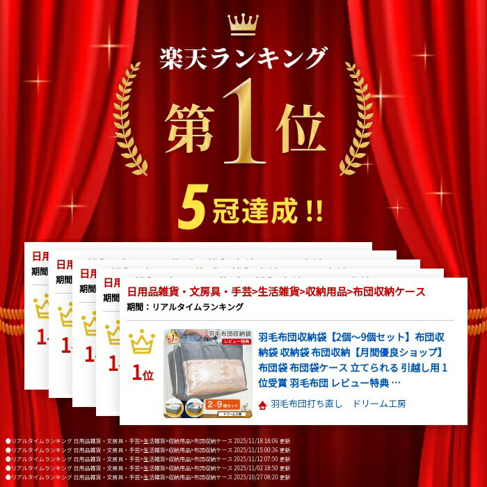 羽毛布団収納袋【2個~9個セット】布団収納袋 収納袋 布団収納【月間優良ショップ】布団袋 布団袋ケース 立てられる 引越し用 1位受賞 羽毛布団 レビュー特典 シングル セミダブル ダブル