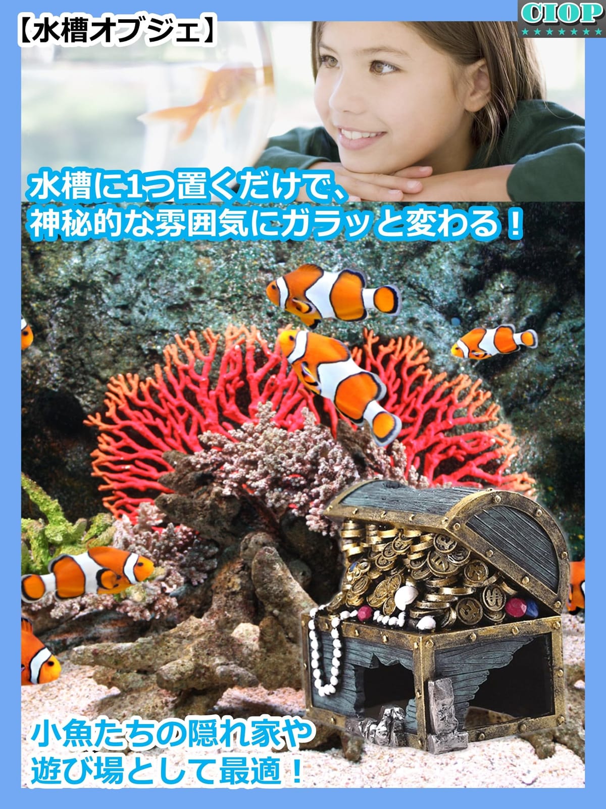 CIOP 【 水槽 オブジェ (宝箱 01) 財宝 金貨 】 アクアリウム オーナメント アクセサリー 飾り 置物 隠れ家 おしゃれ 熱帯魚 金魚 メダカ