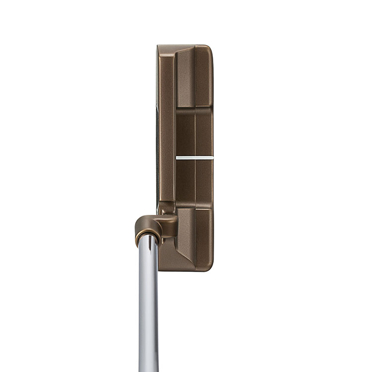 メーカーカスタムクラブ オデッセイ Ai-ONE GIRAFFE-BEAM ジラフビーム パター#2 ユニークなロングネックパター、 キリンがAIと融合してさらに進化! ロングネックと斬新なデザインで話題となったGIRAFFE-BEAMパターがAI融合したことで「Ai-ONE GIRAFFE-BEAMパター」として発売されることになりました。GIRAFFE=キリンという名前からわかるように、今回も垂直部分を長くしたクランクホーゼルを採用していますが、前作同様の剛性を確保しながら、さらなる軽量化を実現。削減できた重さをトウとヒールに振り分け、そこにホワイト・ホットインサートからスイッチされたAi-ONE・インサートの性能も加わることで、オフセンターヒットに対する強さは大きく向上しています。 垂直部分を長くすることで、フェースバランス寄りに 「Ai-ONE GIRAFFE-BEAMパター」は、2024年に発売されたGIRAFFE-BEAMパター同様、GIRAFFE=キリンの名のとおり、クランクホーゼルの垂直部分を長くしたロングネックを採用している点が最大の特徴です。ロングネックにするとシャフト軸はフェースのセンターを向きやすく、フェースバランスに近い重心アングルとなります。たとえば、ブレードパター×クランクホーゼルを好みつつ、オートマチックに真っすぐなストロークをしやすい感覚も欲しいというプレーヤーに合う形状と言えます。 前作以上に高剛性と軽さを両立したネック 加えて、「Ai-ONE GIRAFFE-BEAMパター」のネックは、ただ長いわけではありません。前作では、垂直部分に通常のクランクホーゼルよりもやや幅を持たせつつ、断面を、建物の梁や柱に使われるH形鋼のようにし、剛性の高さと軽さを同時に達成していましたが、今作では、その両立をより推進。前作より垂直部分を細くしながら、片面にのみ溝を採用したことで、前作並みの剛性とさらなる軽量化を実現しています。結果、オフセンターヒットした場合でもフェースのねじれを抑制する効果を発揮。かつ、従来のクランクネックと比べても重くないものに仕上がっているということで、ブレードタイプのみならず、ヘッド重量がかさみがちな大型マレットにも合わせやすいネックになっています。 打点ブレによるフェースの開閉が5.2%抑制されるように 「Ai-ONE GIRAFFE-BEAMパター」では、新しいネックで削減できた重量をヘッドのトウとヒールに分散して再配置しています。また、AIインサート裏が空洞になっていることも重量配分の最適化に貢献しており、前作以上に慣性モーメントが大きいヘッドとなり、剛性の高いロングネックとともに、オフセンターヒット時のフェースの開閉を軽減するようになっています。オデッセイによる比較では、前作のGIRAFFE-BEAMパターよりフェースの開閉が5.2%*抑えられるという結果も出ています。 46.7%も改善されたボールスピードの減少 インサートも、前作と大きく異なる部分です。GIRAFFE-BEAMパターではホワイト・ホットインサートが搭載されていましたが、今作ではAi-ONE・インサートが採用されています。Ai-ONEパターなどですっかりおなじみのAi-ONE・インサートは、インパクトする側の樹脂製部分の裏面に、AIが設計した複雑な隆起を持つアルミ製のパーツが重ねられています。通常、トウやヒールに打点が1cmずれるとボールスピードが約20%ダウン(10mのパットで2mショート)するといわれるなか、このアルミ部分の隆起の効果により、ボールスピードの減少が約5%(10mのパットで50cmショート)抑えられます。また、このインサートの効果にネックの高剛性、ヘッドの高慣性モーメントなどが加わることで、トウ・ヒールへの打点ブレによるボールスピードの減少は、GIRAFFE-BEAMパターから46.7%*も改善しているというデータ(オデッセイ調べ)も出ています。また、今回インサートのカラーにブラックを採用しており、アドレス時にインサートとボディカラーのコントラストが抑えられる働きがございます。 ボディの大部分に、キリンを思わせるカッパー仕上げ 「Ai-ONE GIRAFFE-BEAMパター」は前作のGIRAFFE-BEAMパター同様、随所にキリンをイメージさせるデザインが施されているところも注目に値します。ロゴにはキリンのイラストを採用し、ボディの大部分にはキリンの身体の色に近いカッパー仕上げを導入。ソールにはレーザーでキリンの柄を描き、グリップには前作と違うODYSSEYロゴ、ヘッドカバーには今回贅沢にも刺?によってキリンの模様が施されています。ソール前方のトウとヒールには、それぞれ約15gのウェイトを搭載。 ロフト(°) 3.0 標準ライ角(°) 70.0 ヘッド素材 ステンレススチール / アルミニウムソールプレート / ポリカーボネート フェースインサート Ai-ONE・インサート ソールウェイト 約15g × 2 STROKE LAB 70 シャフト (レッド) よりストロークの再現性を高め、安定させたい方におすすめのカーボンとスチールの複合シャフト。 ※市販のSUPER STROKEシャフトではなく、オデッセイオリジナルのSUPER STROKEですので、ウェイト変更ができません。 ●グリップ未装着での発送可能です ご自