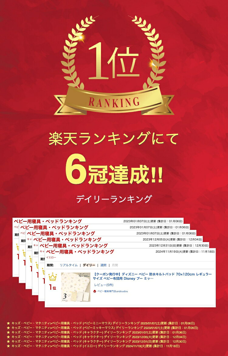 ©Disney ©Disney Based on the "Winnie the Pooh" works by A.A.Milne and E.H.Shepard. 商品カテゴリ:汗取り パッド ベビー布団 キルトパッド 敷きパッド 敷パッド 防水キルトパッド 防水シーツ 防水パッド おねしょ対策 ダニ対策 防ダニ 70cm 120cm レギュラーサイズ ベビーベッド 敷布団用 Disney Mickey Minnie Pooh&Friends Pooh ミッキー ミニー くまのプーさん ディズニー アイボリー イエロー クリーム パイル 綿100% コットン100% 吸水 汗っかき 寝汗 お昼寝 プチ ギフト ベビー寝具 出産準備 赤ちゃん 新生児 おねしょ対策 防水 《ディズニーベビー》 関連商品【クーポン発行中】ディズニー ベビー 防水シーツ 70×120cm レ...ディズニー 防水キルトパッド 70×120cm/60×90cm プー ...【クーポン発行中】防水キルトパッド 70×120cm/60×90cm ...1,190円1,290円1,490円【クーポン発行中】防水キルトパッド 70×120cm/60×90cm ...【クーポン発行中】ベビー 防水キルトパッド 70×120cm レギュラ...【クーポン発行中】ディズニー 防水シーツ 100×205cm/120×...1,290円1,190円1,490円【クーポン発行中】防水キルトパッド 70×120cm/60×90cm ...【クーポン発行中】ディズニー ベビー 防水キルトパッド 60×90cm...【クーポン発行中】あったか キルトパッド 防水/メッシュ 70×120...1,190円890円990円【クーポン発行中】ディズニー 防水シーツ 70×120cm/60×90...【クーポン発行中】ディズニー ベビー 防水シーツ 60×90cm ミニ...【クーポン発行中】ベビー 冷感 防水シーツ 70×120cm レギュラ...990円890円990円— 選べる3デザイン — 商品名≪ディズニー≫キルトパッド【裏面防水】 (Mickey&Friends)(Pooh&Friends)(Mickey Mouse・Minnie Mouse) (ミッキー&フレンズ)(プー&フレンズ)(ミッキーマウス・ミニーマウス) 商品について中綿入りで適度な厚みがあり、やわらかな寝心地の防水キルトパッド 裏面はポリウレタンラミネート加工を施しているので、しっかり防水対策ができます。 さらに四隅ゴム付きで、敷布団にフィットしずれにくくなっています。 サイズ70×120cm(四隅ゴム付き)※キルティング製許容範囲+5%、-3% 品 質【表側】 ・《A》 ポリエステル65%・綿35% ・《B》《C》 綿100%(パイル部分) ポリエステル100%(地糸) (裏側にポリウレタンラミネート加工) 【中綿】ポリエステル100% 【パイピング】ポリエステル80%・綿20% 生 産中国 ご使用いただける製品サイズ70×120cmのレギュラーサイズ敷布団用です。 使用上のご注意・手洗いができます。 ・無蛍光洗剤をご使用ください。 ・ねじり又は絞りはお避けください。 ・洗濯取り込みの際は、物干し竿と防水加工面(裏面)が密着し、加工面がはがれる可能性がありますので、取り扱いには十分ご注意ください。 ・色落ちすることがありますので、他の物と分けて洗ってください。 ・手洗い後、放置すると色移りや色落ちの原因となりますので、ご注意ください。 ・染料の性質上、使用時の摩擦により色落ちすることがありますのでご注意ください。 ・乾燥機、脱水はご使用できません。