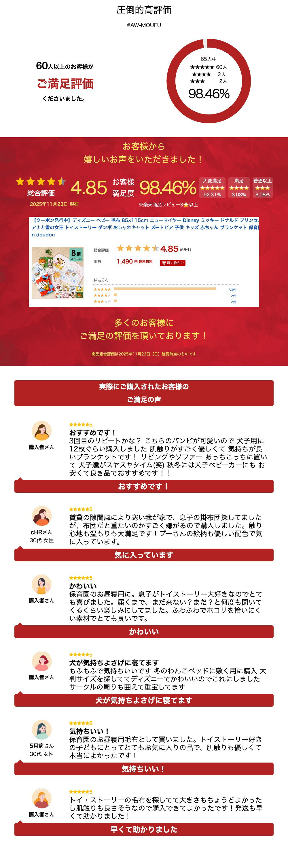 ▶ その他の毛布・スリーパー製品はこちらをクリック ©Disney ©Disney/Pixar ©Just Play.LLC. 《ディズニーベビー》 《New Myer Blanket Sleeper》 関連商品【クーポン発行中】ディズニー 毛布 85×115cm/100×140...【クーポン発行中】ディズニー ベビー 毛布 70×100cm ニューマ...【クーポン発行中】ディズニー ベビー 毛布 100×140cm ニュー...1,390円1,190円1,790円【クーポン発行中】ベビー 綿毛布 日本製 85×115cm ディズニー...【クーポン発行中】マーベル アベンジャーズ 毛布 85×115cm/...【クーポン発行中】JR 新幹線 毛布 85×115cm/100×140...3,490円1,390円1,390円【クーポン発行中】ディズニー 毛布 スリーパー 2点セット ニューマイ...【クーポン発行中】スター・ウォーズ 毛布 100×140cm ニューマ...【クーポン発行中】マーベル アベンジャーズ 毛布 100×140cm ...2,790円1,790円1,790円【クーポン発行中】ベビー 綿毛布 くり衿タイプ リバーシブル 日本製 ...【クーポン発行中】ベビー 綿毛布 日本製 85×115cm 黄色 無地...ディズニー スリーパー 37×56cm/50×70cm ベビー/キッズ...3,090円2,990円1,490円ボリューム感がありふんわり軽い掛け心地! 思わず頬ずりしたくなる ふわふわなめらかな心地良さ - design variation - 8デザインから選べます 商品名 ≪ディズニー≫ニューマイヤー毛布 (ズートピア)(ミッキー&フレンズ)(おしゃれキャット)(ドナルドダック)(ダンボ)(ディズニープリンセス)(アナと雪の女王)(トイ・ストーリー) (Zootopia)(Mickey&Friends)(The Aristocats)(Donald Fauntleroy Duck)(Dumbo)(Disney Princess)(FROZEN)(TOY STORY) 商品について 極上の肌触りのニューマイヤー毛布はデザイン豊富。 ボリューム感たっぷり!なめらかでふわふわな肌触りです。 お昼寝にも使いやすいサイズです。 サイズ 85×115cm 品 質 ポリエステル100% 生 産 中国 使用上のご注意 ・お洗濯の際、洗濯ネットをご使用ください。 ・無蛍光洗剤をご使用ください。 ・毛羽抜けや毛玉が発生することがありますので、お取扱いにはご注意ください。 ・洗濯後、放置すると色移りや色落ちの原因となりますので、放置することなく、形を整えて干してください。 ・乾燥機などによる乾燥および熱乾燥はお避けください。