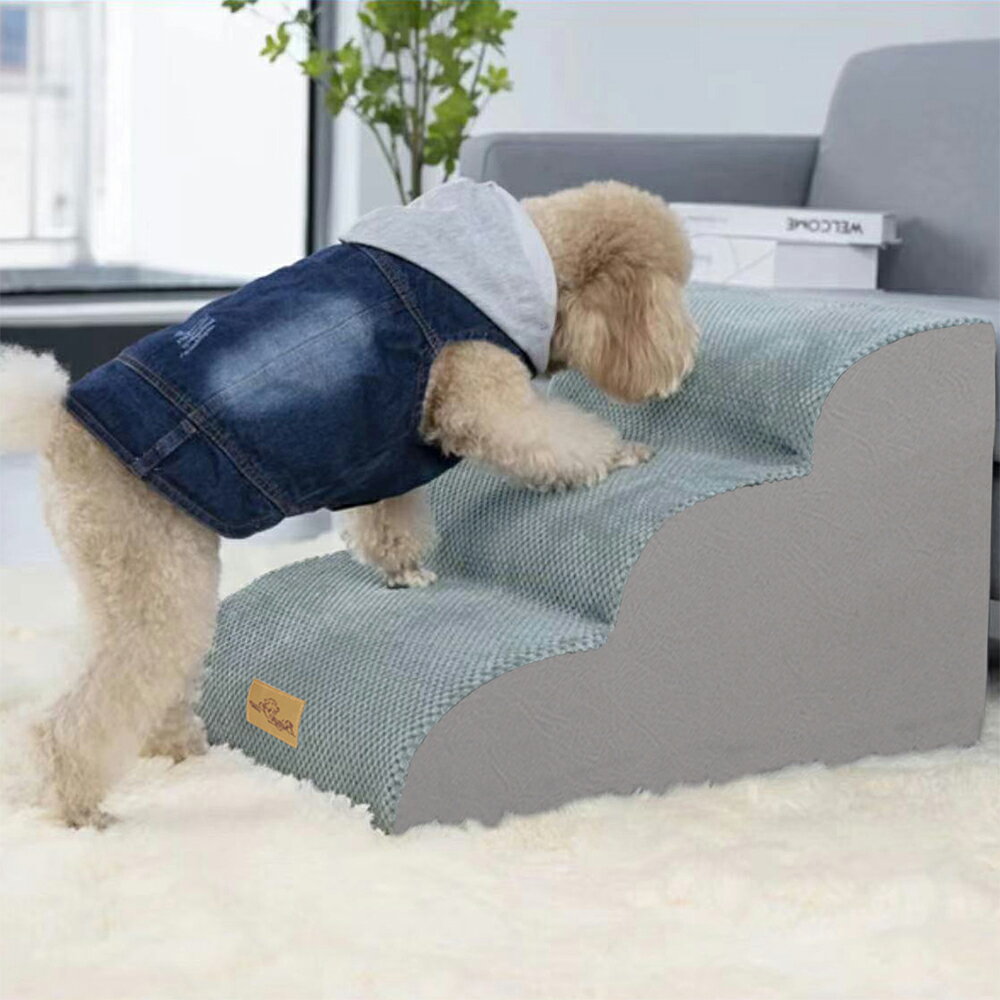 bingopaw 犬用ステップ スロープ ドッグステップ 小型犬 中型犬 4段 3段 高さ50cm 高さ40cm 幅広 ソファ階段 洗える シニア 滑り止め グレー クッション 緩やか