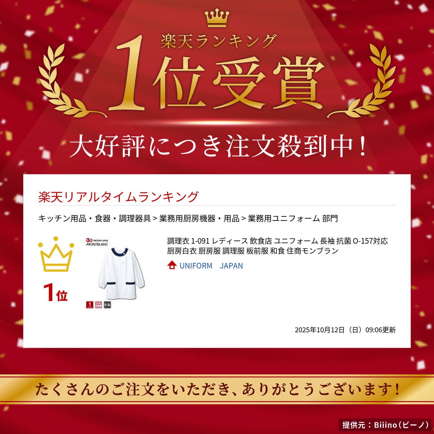 調理衣 1-091 レディース 飲食店 ユニフォーム 長袖 抗菌 O-157対応 厨房白衣 厨房服 調理服 板前服 和食 住商モンブラン